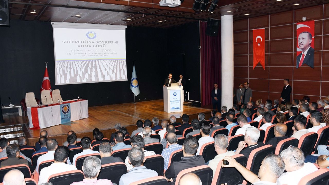 Dicle Üniversitesi Rektörü Prof. Dr. Kamuran Eronat, yaptığı konuşmada soykırımı sadece bir trajedi değil, aynı zamanda bir medeniyet çöküşü olarak tanımlayarak, “11 Temmuz 1995 günü Bosna Hersek'te 8 binden fazla insanın katledilmesi nedeniyle Uluslararası Adalet Divanı tarafından Avrupa’da yaşanan ve İkinci Dünya savaşından sonraki en büyük soykırım olarak nitelendirilen Srebrenitsa Soykırımı, insanlık tarihine kara bir leke olarak geçmiştir. İnsanlığın bu kara günü, Birleşmiş Milletler Genel kurulu tarafından 23 Mayıs 2024 tarihli kararla “11 Temmuz Srebrenitsa Soykırımını Uluslararası Düşünme ve Anma Günü” olarak kabul edilmiş; Cumhurbaşkanlığımızın 9 Temmuz 2024 tarihli genelgesi ile bugünün ülkemizde de anma günü olarak yâd edilmesine karar verilmiştir.