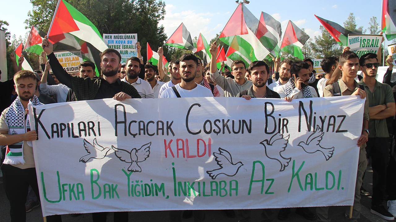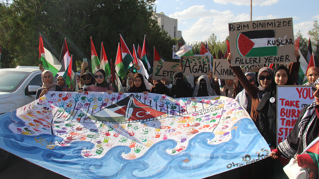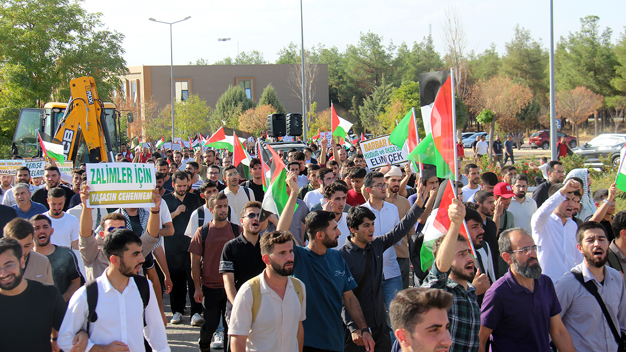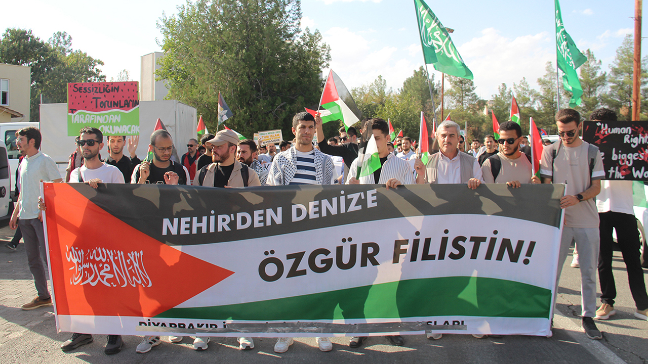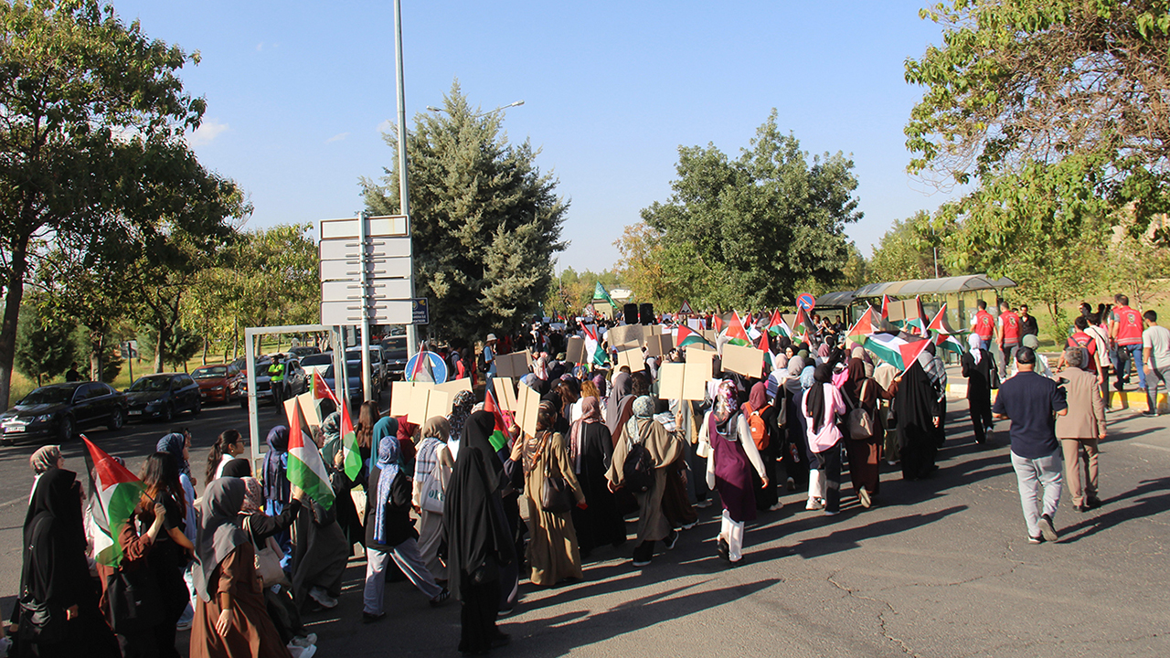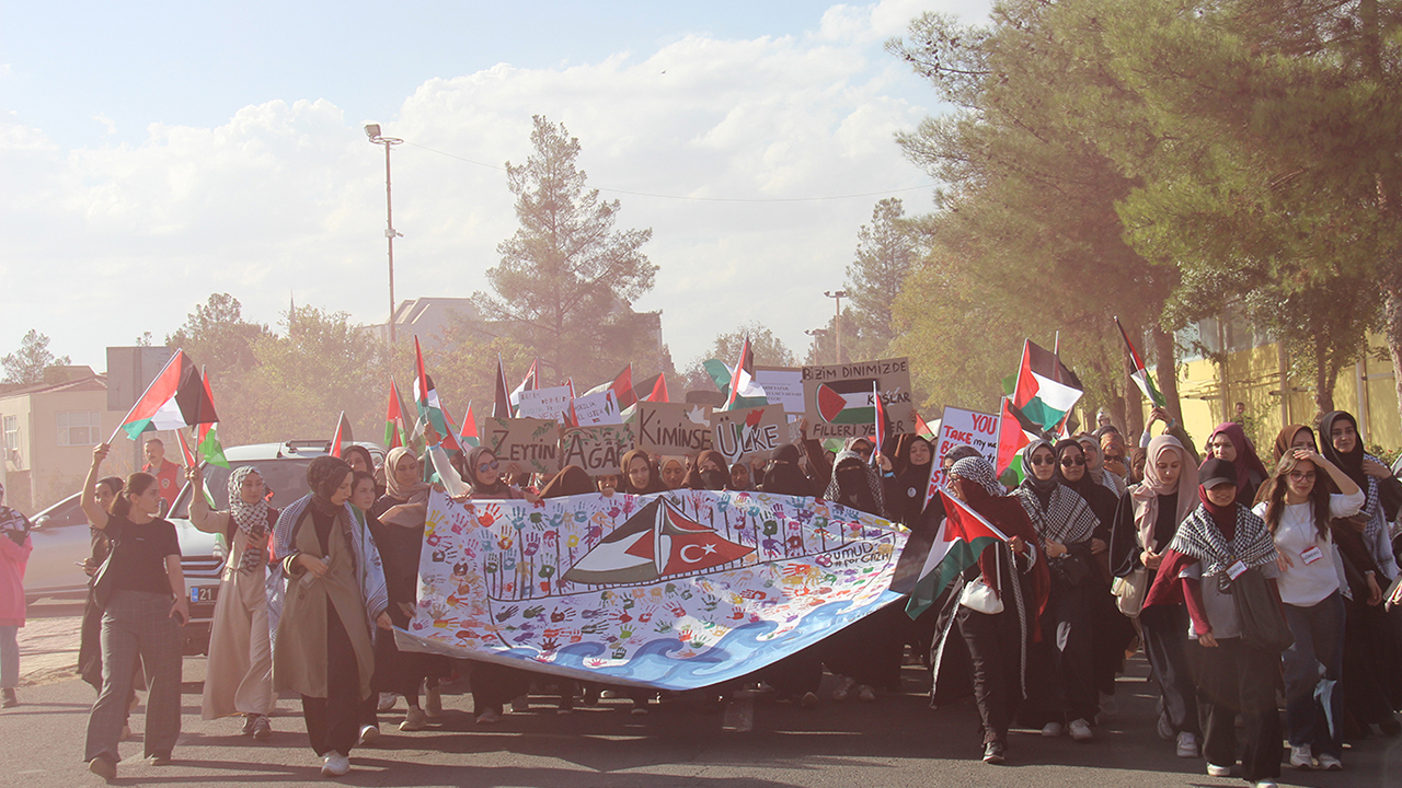 Diyarbakır Dicle Üniversitesi öğrencileri, Aksa Tufanı Operasyonunun 2'nci yıldönümünde Gazze'ye destek mesajı verdi.
