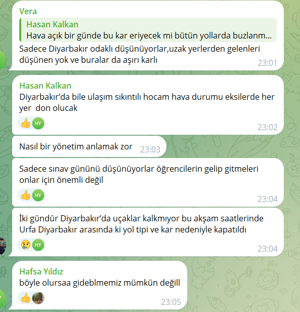 Öğrenciler, özellikle ulaşımın tehlikeli olduğu bu dönemde sınavların güvenli bir şekilde yapılmasını veya alternatif bir yöntem geliştirilmesini istiyor; üniversite yönetimi ise şu ana kadar taleplere yanıt vermiş değil.