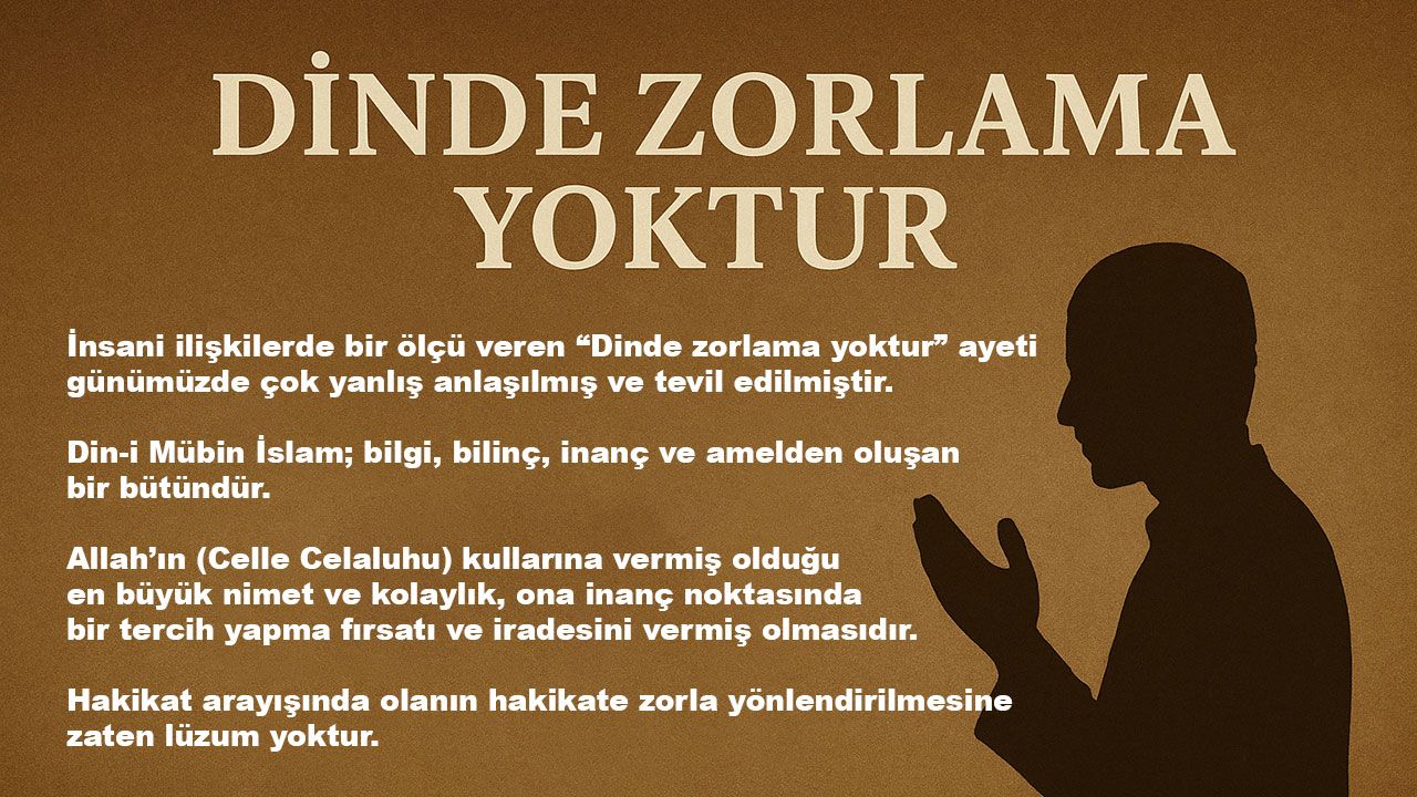 İnsani ilişkilerde bir ölçü veren "Dinde zorlama yoktur" ayeti günümüzde çok yanlış anlaşılmış ve tevil edilmiştir.