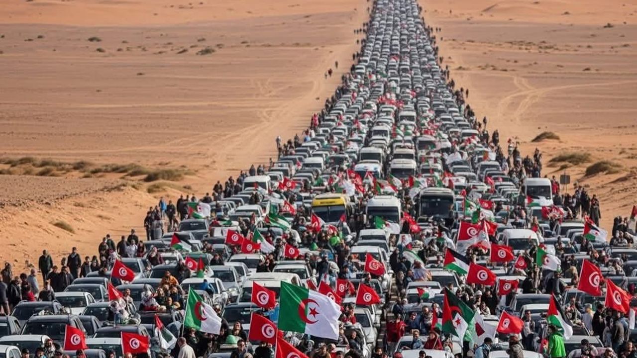 Tunus’tan yola çıkan ve daha sonra Cezayirli bir heyetin de katıldığı "Mağrip Direniş Kervanı", Libya’nın batısındaki Zaviye kentine ulaştıktan sonra ikinci aşamasına geçti. Kervan, Gazze üzerindeki ablukayı kırmak amacıyla Mısır sınırına doğru ilerleyişini sürdürüyor.
