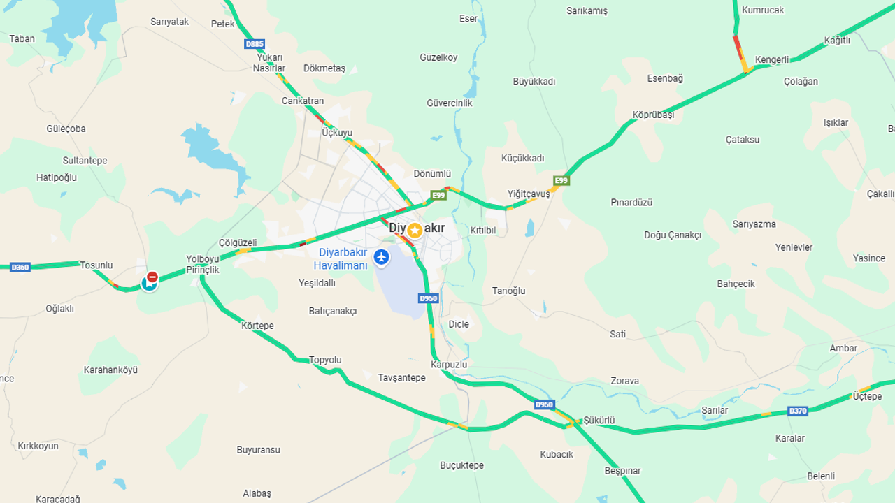 Diyarbakır kentinden Elazığ yönüne giden sürücüler, Elazığ–Diyarbakır yolunun 46–48. kilometreleri arasında devam eden yol yapım çalışmaları nedeniyle tek şeritten ve kontrollü geçişle ilerliyor.