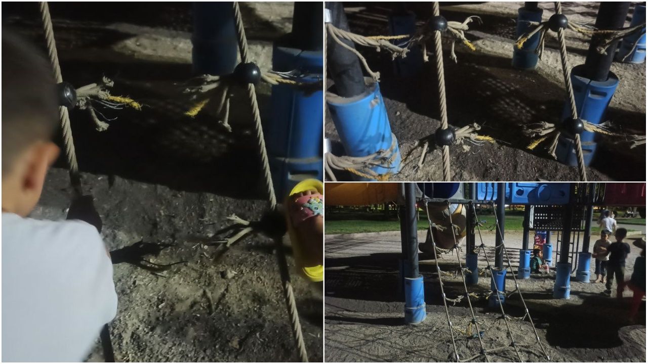 Parktaki tırmanma iplerinin kopması ve tellerden oluşan iplerin çocukların vücudunu çizmesi, ebeveynler arasında endişeye yol açtı.