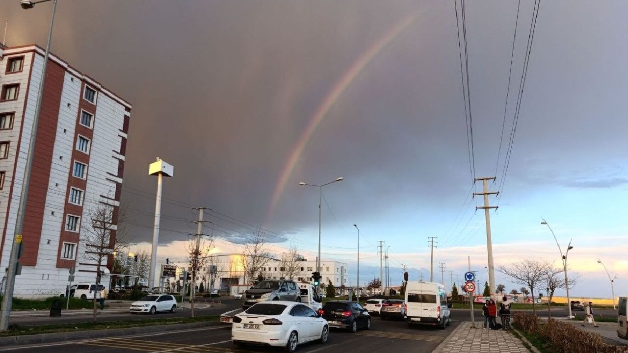 Yağmurla beraber yer yer güneşin açması ile kentin farklı noktalarında seyirlik rengârenk gökkuşağı manzarası oluştu. Vatandaşlar, uzun süre gökkuşağını hayranlıkla izledi.