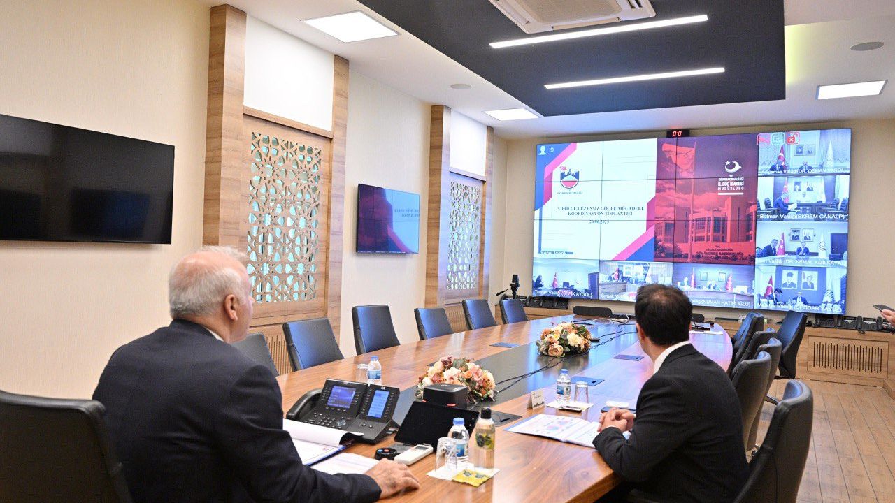 Vali Zorluoğlu’nun koordinasyonunda, düzensiz göçle daha etkin mücadele edilmesini amaçlayan 5. Bölge Düzensiz Göçle Mücadele Koordinasyon Toplantısı Video Konferans Sistemi (VKS) üzerinden gerçekleştirildi.