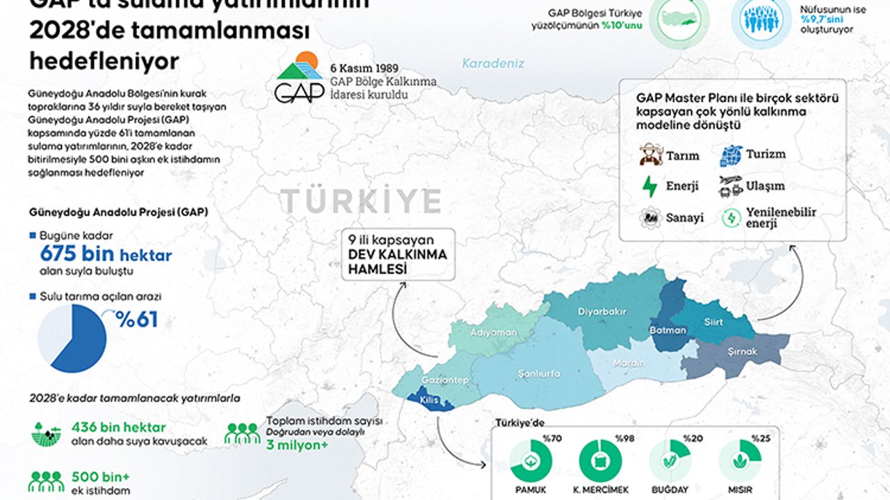 Böylece GAP’ın tamamlanmasıyla birlikte doğrudan ve dolaylı olarak 3 milyonu aşkın kişiye istihdam sağlanması hedefleniyor.