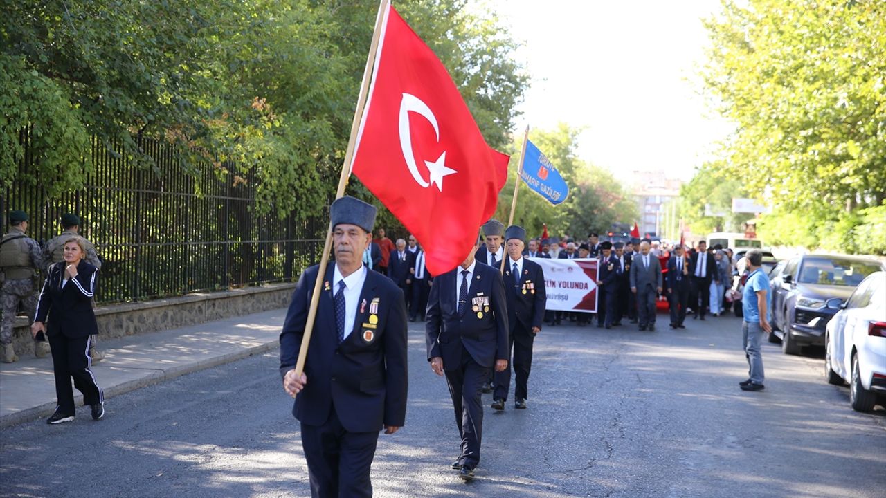 Elazığ'da 19 Eylül Gaziler Günü dolayısıyla 15 Temmuz Demokrasi Meydanı'nda bir araya gelen katılımcılar, Valiliğe kadar yürüdü.