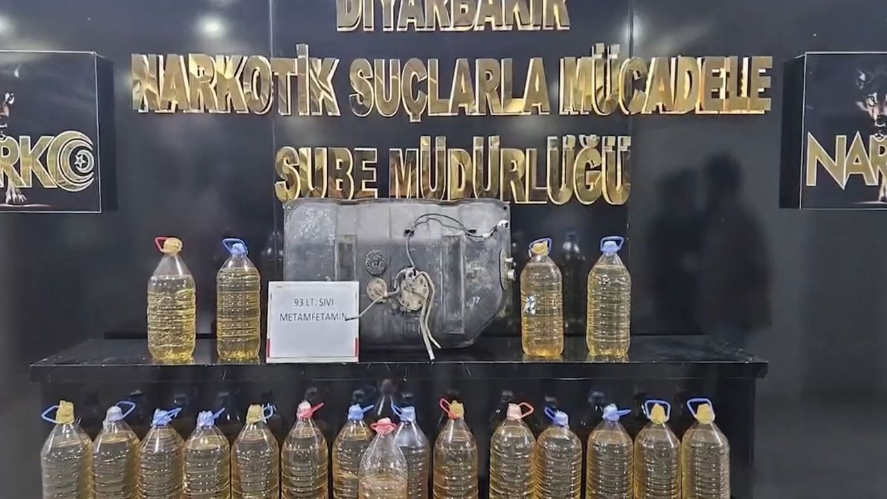 Durdurulan araçta narkotik köpeği eşliğinde yapılan aramada, bagaj kısmındaki yedek yakıt deposu içinde 93 litre sentetik uyuşturucu madde ele geçirildi.