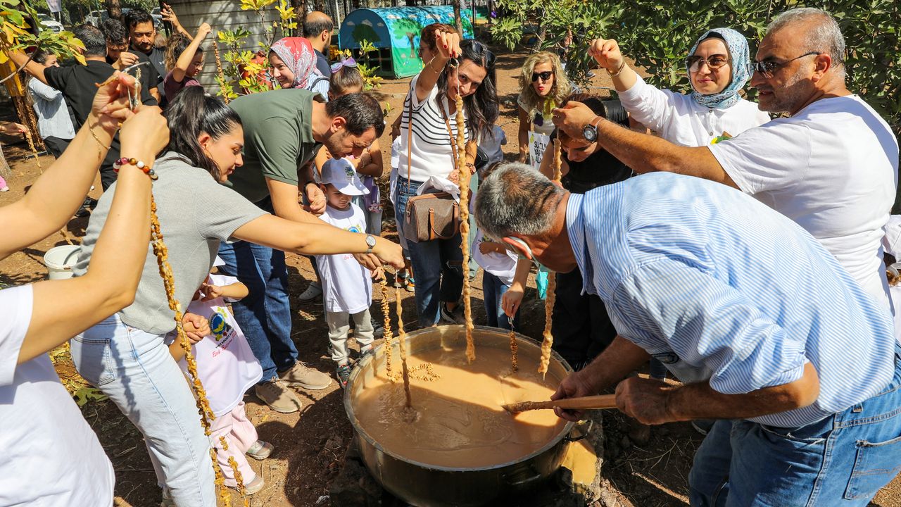 Etkinlikte, okulun bahçesindeki bağda veli ve öğretmenleriyle üzüm toplayan öğrenciler, daha sonra üzümlerden geleneksel yöntemlerle yapılan pekmez, pestil ve sucuk yapımına katıldı.