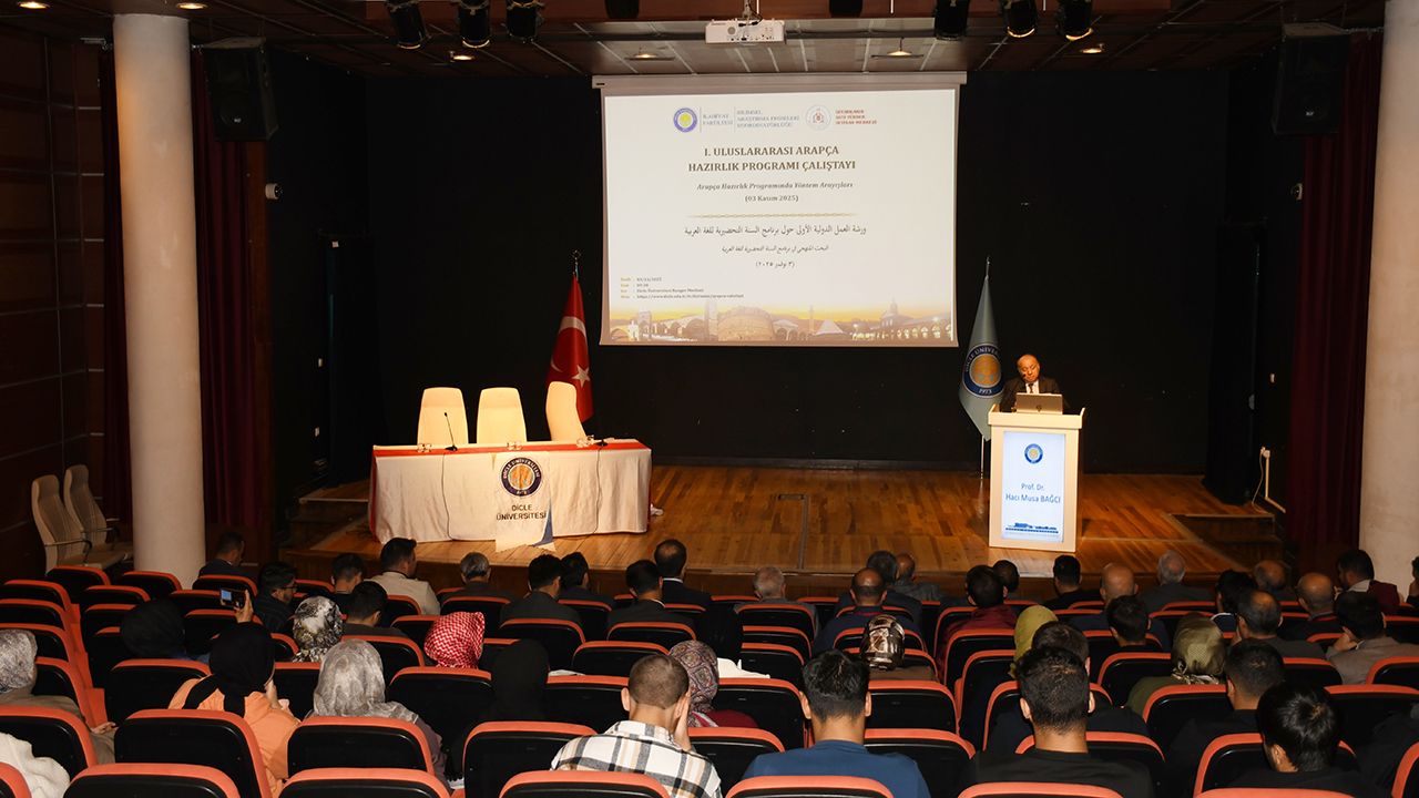 Açılış konuşmasını yapan Prof. Dr. H. Musa Bağcı, çalıştayın temasının hem akademik hem de pedagojik açıdan büyük önem taşıdığını belirterek, Arapça öğretiminin klasik ve modern boyutlarıyla çok katmanlı bir süreç olduğunu ifade etti. Klasik yöntemlerin (nahiv, sarf, belagat) dilin yapısını ve derinliğini kavramada önemli olduğunu vurgulayan Bağcı, ancak bu yöntemlerin modern iletişim ve akademik ihtiyaçları tek başına karşılamadığını söyledi.