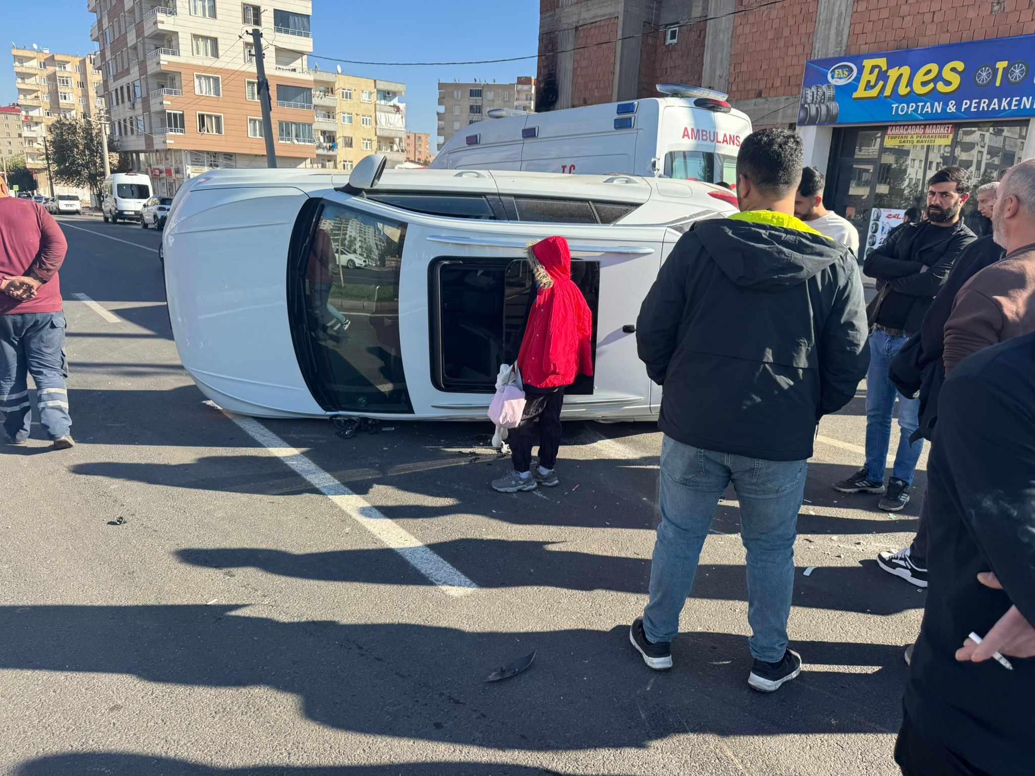 Haber verilmesi üzerine olay yerine sağlık ve polis ekipleri sevk edildi. Takla atan otomobildeki anne ve kızı, sağlık ekipleri tarafından ayakta tedavi edilerek, kazadan hafif sıyrıklarla kurtuldular.