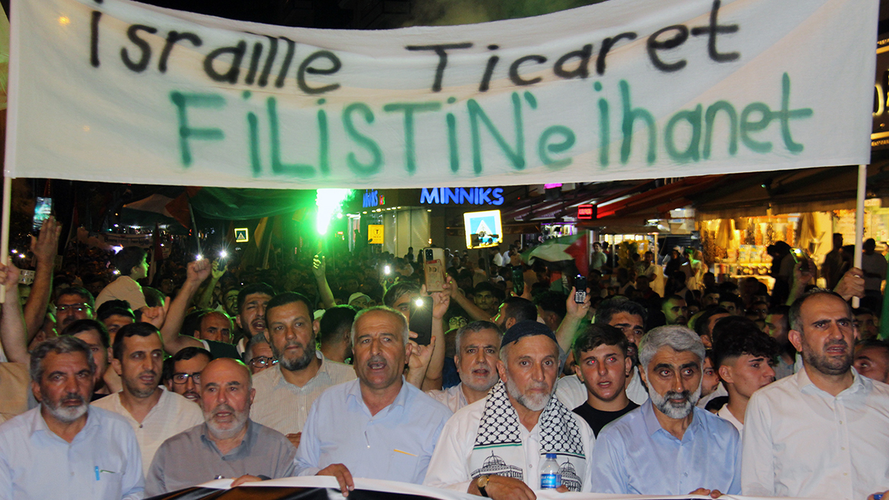 Diyarbakır merkez Kayapınar ilçesi Fırat Bulvarında bir araya gelen Diyarbakırlılar, ellerindeki Filistin bayrakları ve dövizlerle tekbir ile sloganlar eşliğinde basın açıklamasının yapılacağı Yenihal Köprülü Kavşağı'na doğru yürüyüşe geçti.