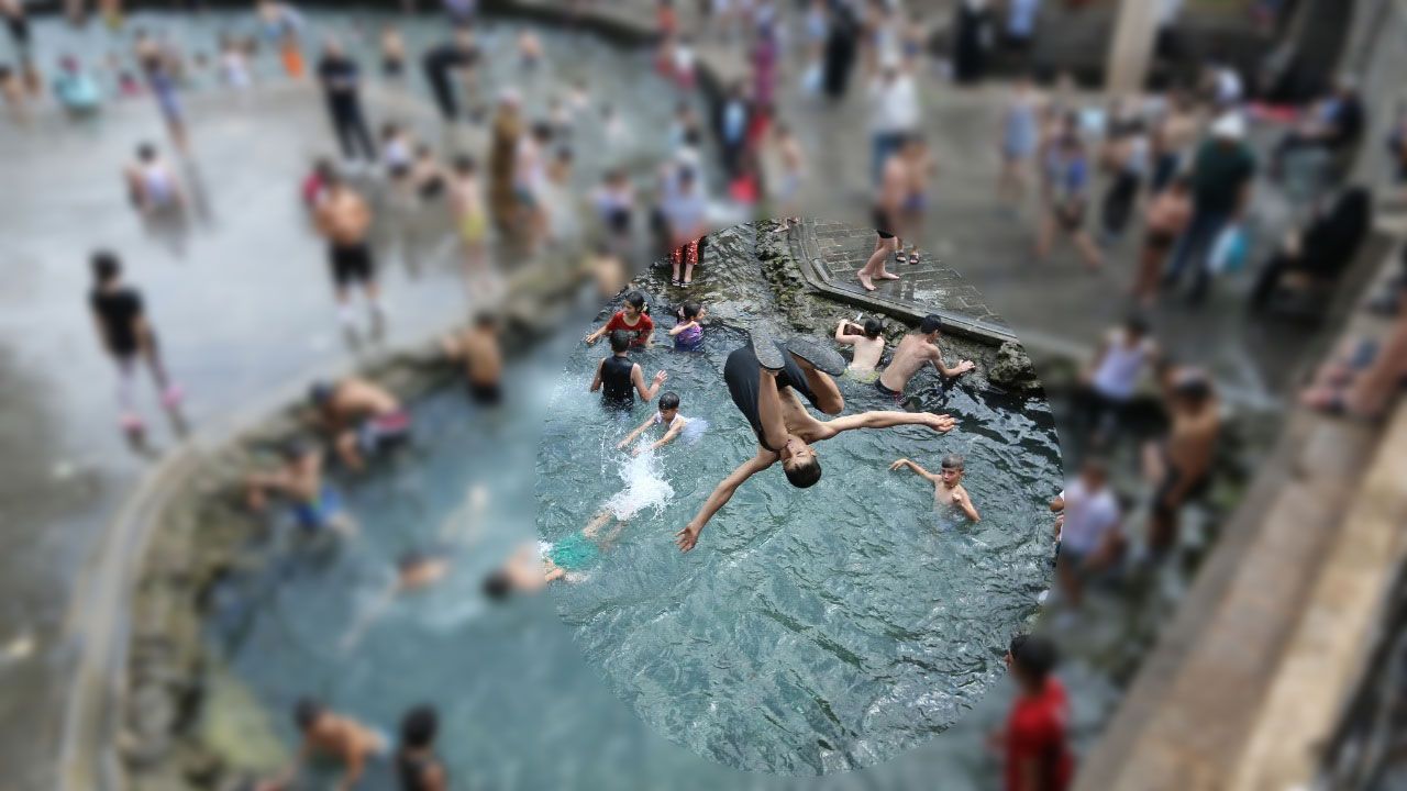 Kentte sıcaklık 42 dereceyi bulurken, özellikle farklı semtlerden gelen çocuklar parkta bulunan yaklaşık bir metre derinliğindeki süs havuzunda yüzüyor. Uyarı tabelalarında açıkça suya girmenin yasak ve tehlikeli olduğu belirtilse de bazı çocuklar, havuzun çevresindeki yaklaşık 2,5 metrelik yükseklikten atlayarak suya girmeyi tercih etti.