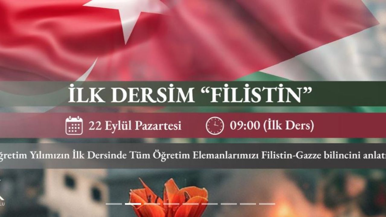 “2025-2026 eğitim-öğretim yılımızın ilk dersinde tüm öğretim elemanlarımızı Filistin-Gazze bilincini anlatmaya davet ediyoruz.”