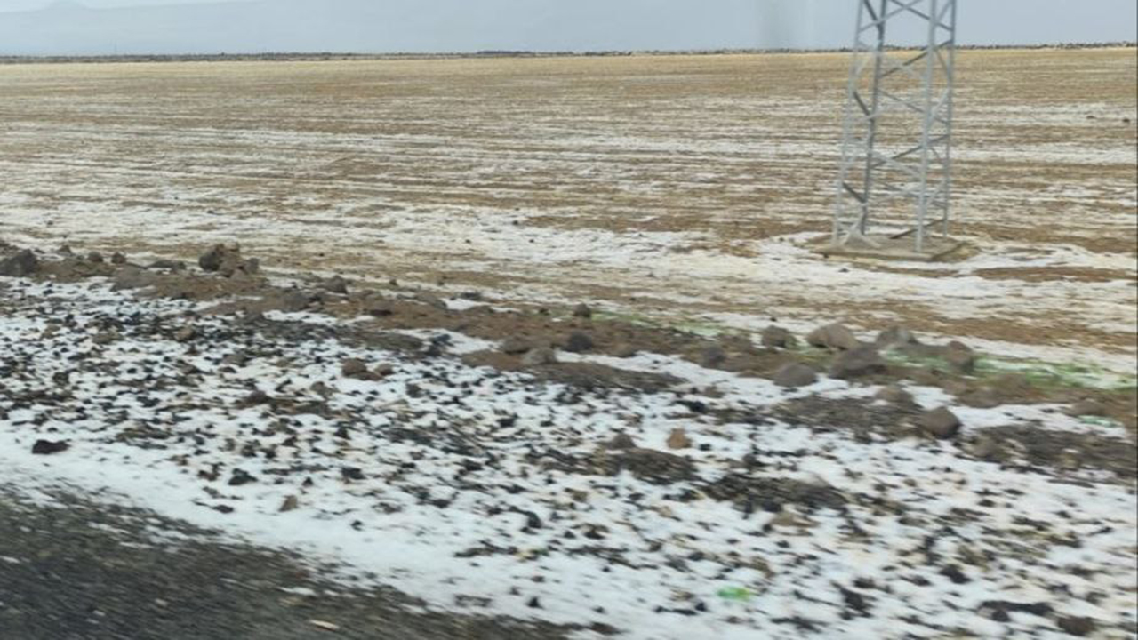 Karacadağ çevresindeki kırsal alanlarda etkili olan dolu, özellikle Diyarbakır-Viranşehir kara yolunun bazı kesimlerinde yoğunlaştı. Yağış sonrası yol kenarları ve arazi kısmen beyaz bir görünüm aldı.