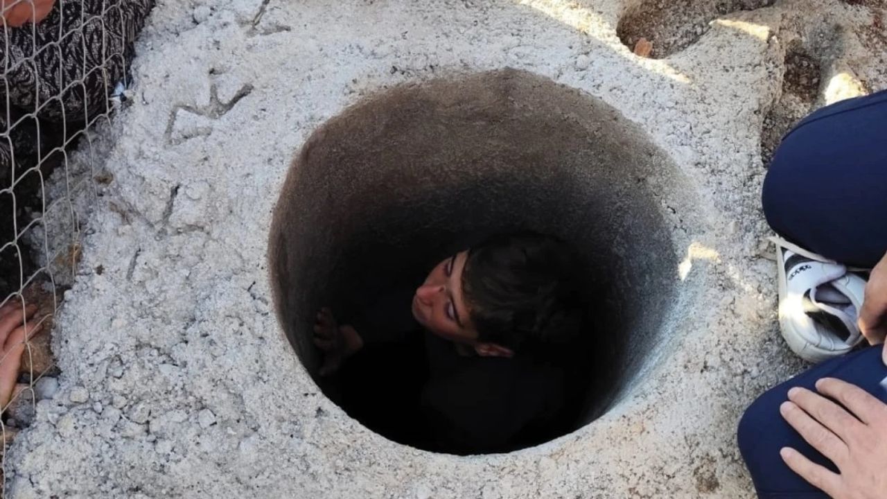 Bölgeye sevk edilen AFAD ekipleri, çukurda genişletme yaparak çocuğu sıkıştığı yerden çıkardı.