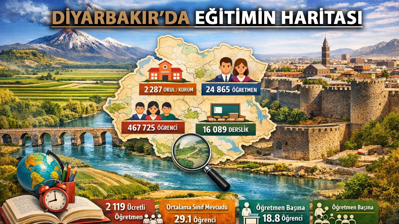 Bu kurumlarda görev yapan toplam öğretmen sayısı: 24.865 kişidir. Tabiî ki branş ve okul dağılımları çok dengesiz olduğunu rahatlıkla söyleyebiliriz. Buna bağlı olarak Diyarbakır’da öğretmen açığı özellikle branş öğretmenlerinde ve Köy/kırsal kesimindeki okullarda belirgin bir sorun olarak devam ediyor. Yerel veriler ~1.400 öğretmen civarında ek ihtiyacın bulunduğunu gösteriyor ancak bu sayı sabit değildir ve yıl içinde atamalarla değişebilir.