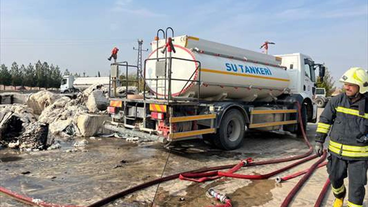 İlçedeki istasyonda plakası öğrenilemeyen pamuk yüklü tırın dorsesinde, henüz belirlenemeyen bir nedenle yangın çıktı.