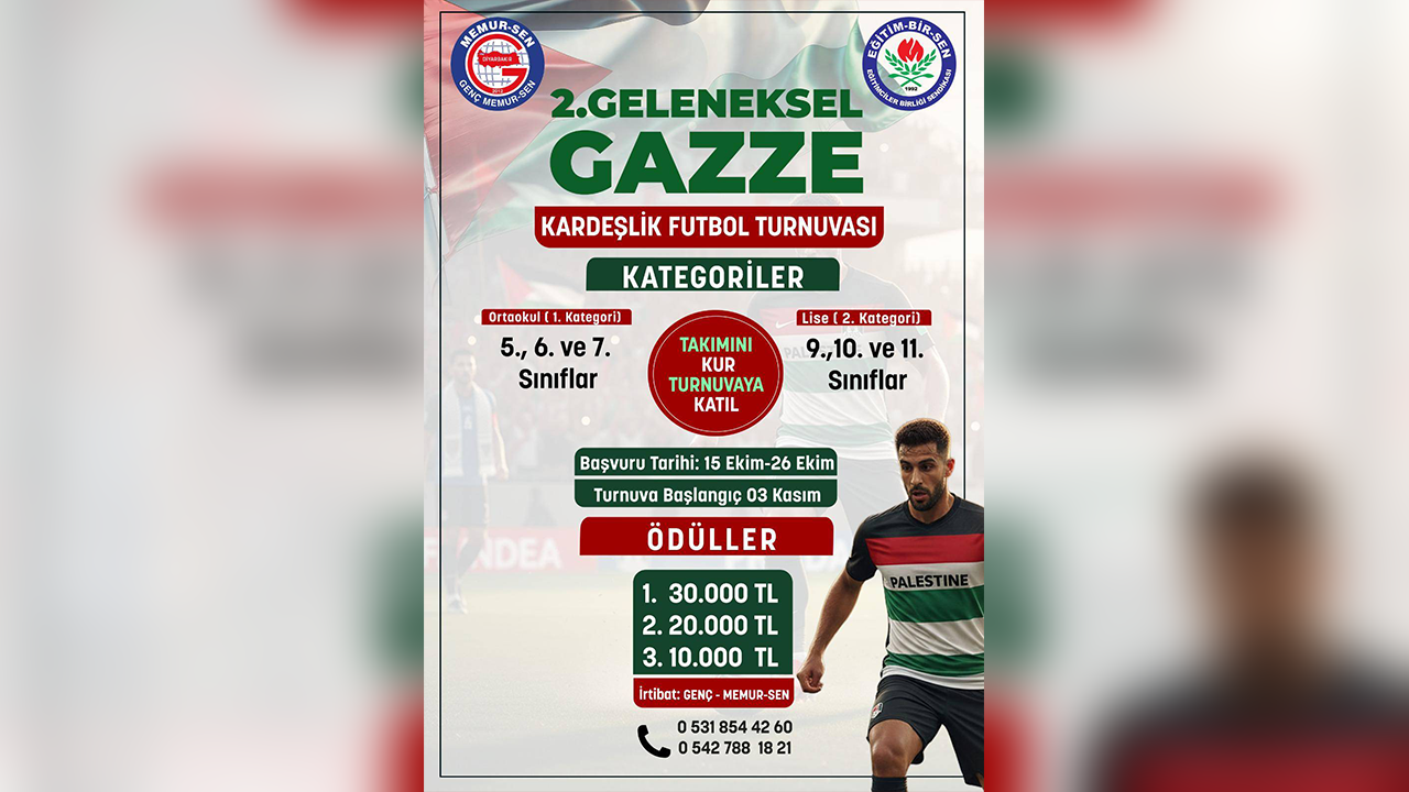 Aksa Tufanı Operasyonu'nun başladığı 7 Ekim 2023 tarihinden sonra Diyarbakır'da gençler arasında Filistin davasına duyarlılığı artırmak amacıyla Diyarbakır Genç Memur-Sen tarafından başlatılan "Gazze Kardeşlik Futbol Turnuvası", bu yıl ikinci kez düzenleniyor. Geçtiğimiz yıl 4 merkez ilçeden 38 okulun katılımıyla yapılan turnuvada yaklaşık 680 öğrenci yer aldı.
