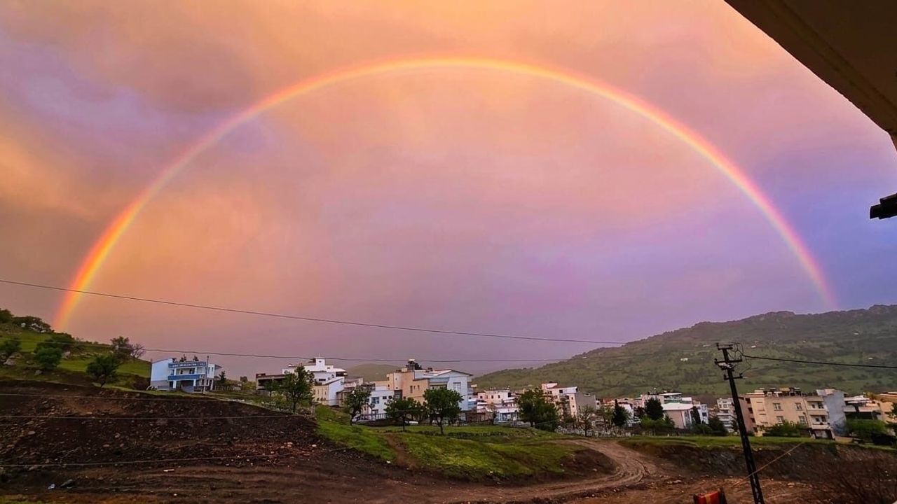 Diyarbakır'ın bu yıl en fazla yağış alan ilçelerinden Çermik'te, yağmur sonrası oluşan gökkuşağı, görsel bir şölen oluşturdu.