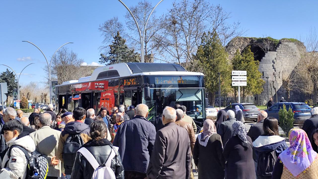 Diyarbakır'da hafta sonları toplu taşıma seferlerinin azaltılması, vatandaşları büyük mağduriyetle karşı karşıya bırakıyor. Duraklarda uzun kuyruklar oluşurken, otobüsler tıklım tıklım doluyor. Özellikle havaların ısınmasıyla birlikte dışarı çıkan vatandaşlar, yetersiz araç sayısı nedeniyle uzun süre beklemek zorunda kalıyor.