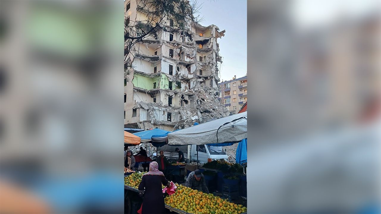 Ağır hasarlı ve her an çökme riski taşıdığı belirtilen binanın hemen önünde sebze, meyve ve giyim tezgâhları açılırken, hem esnafın hem de alışveriş yapanların can güvenliği tehlikeye atıldı. Yaşanan durum üzerine çevredeki vatandaşlar, yetkilileri duyarsızlıkla suçladı.