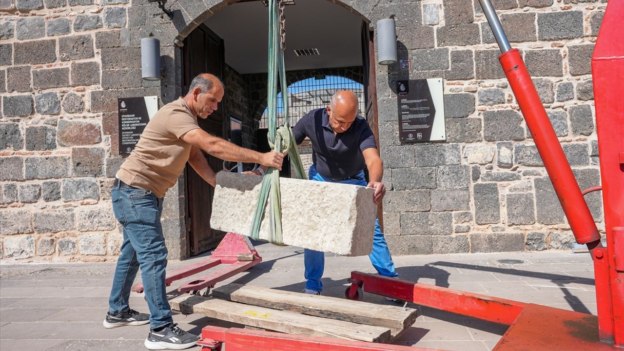 'Müdürlüğümüze gelen bir telefon ihbarıyla Hani ilçemize gittik. İlçede 6 Şubat Kahramanmaraş merkezli depremlerde zarar gören bazı evlere yönelik yıkım çalışması yapıldığını gördük. Yıkım ve kazı esnasında bir tarihi esere rastlanılmış. İnşaat sahasında yaptığımız araştırmada bir mezar kapağı olduğunu gözlemledik. Yerinden alıp İçkale'ye getirdik. Mermerden olan mezar kapağını 10 Ağustos'ta açılışını yaptığımız Saint George Kilisesi önünde sergilemek için hazırlık yaptık.'
