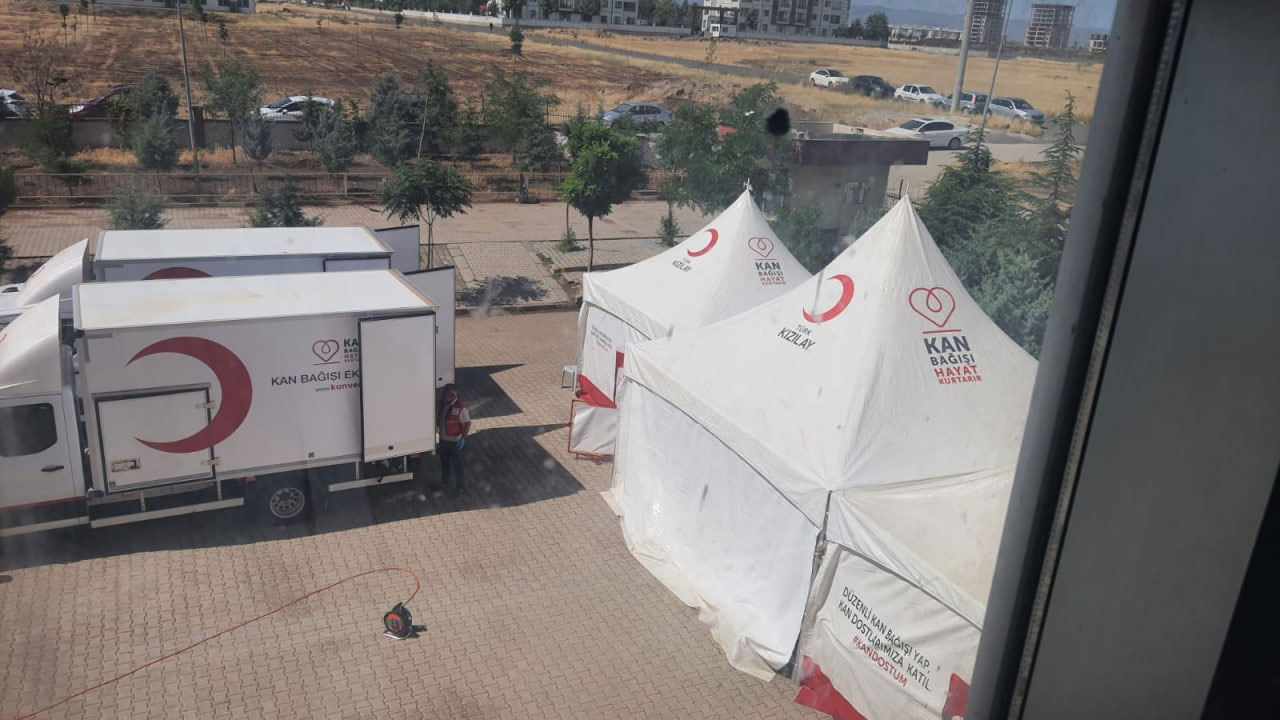 Dün, Diyarbakır merkez Kayapınar ilçesi Mehmet Akif İnan İlkokulu bahçesinde kurulan Kızılay Kan Bağışı çadırları, saat 09.30-18.00 saatleri arasında kan bağışçılarını ağırladı.