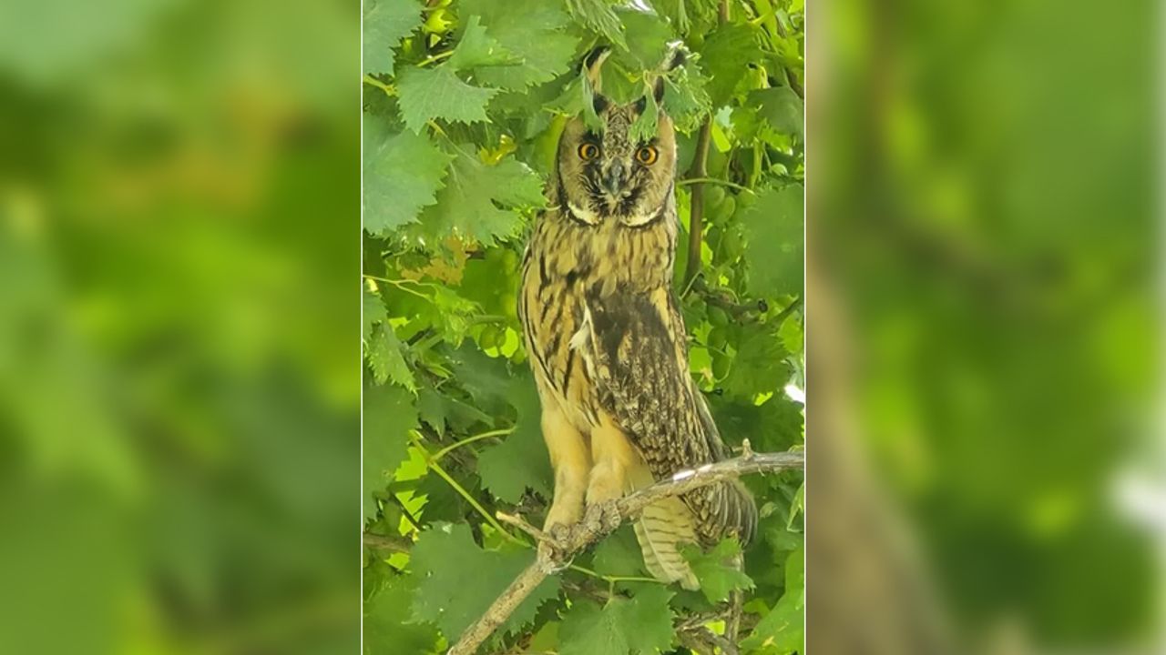 Gündüz saatlerinde bir ağacın dalında fark edilen bu özel tür, uzun tüyleriyle dikkat çeken kulak yapısı ve doğayla bütünleşen tüy renkleri sayesinde ilgi odağı oldu.