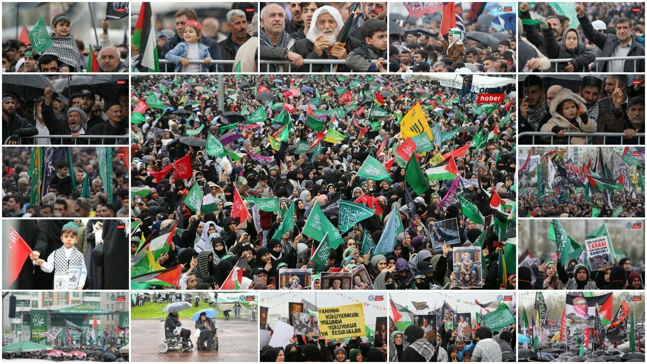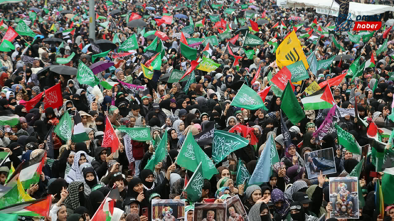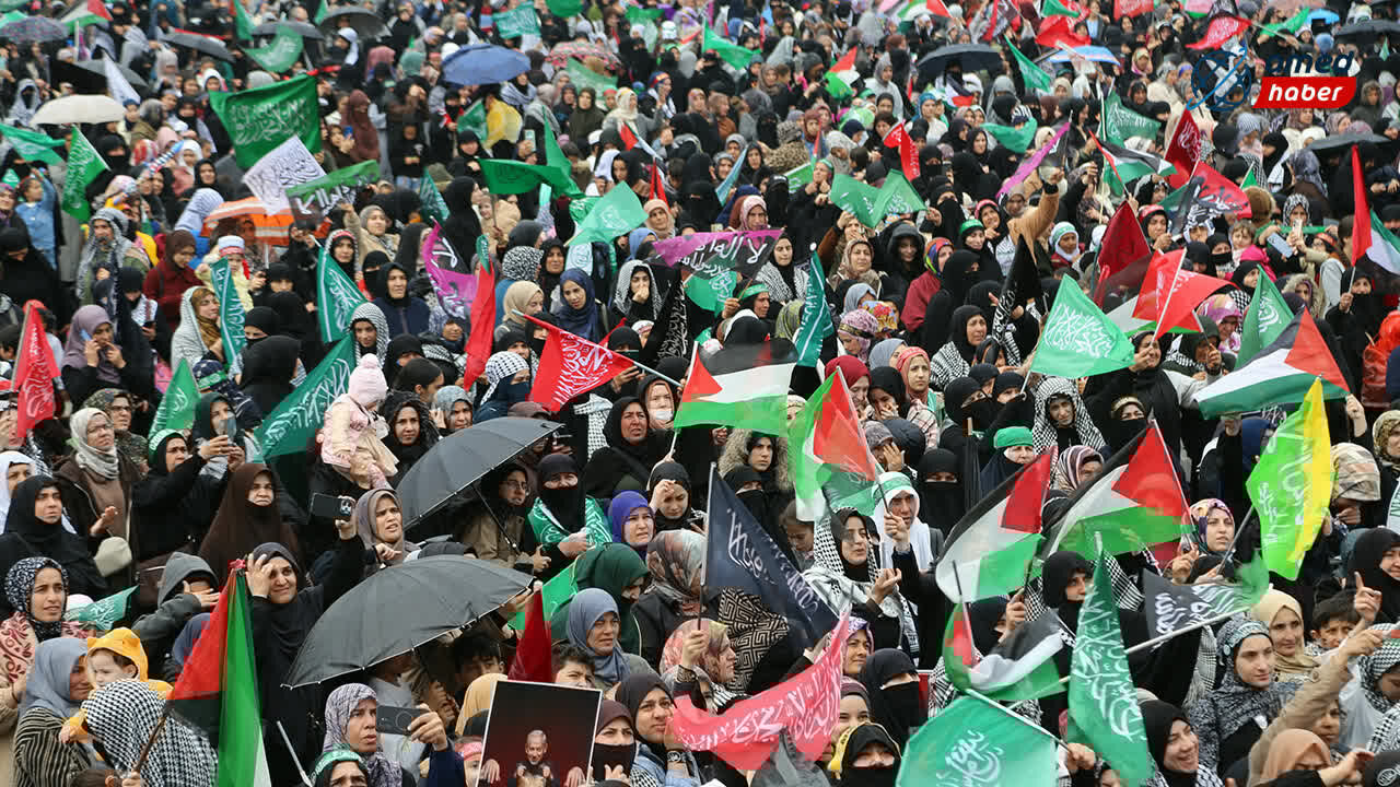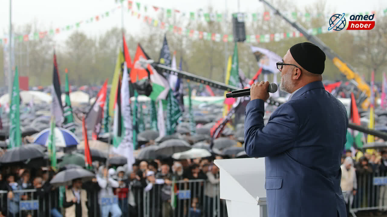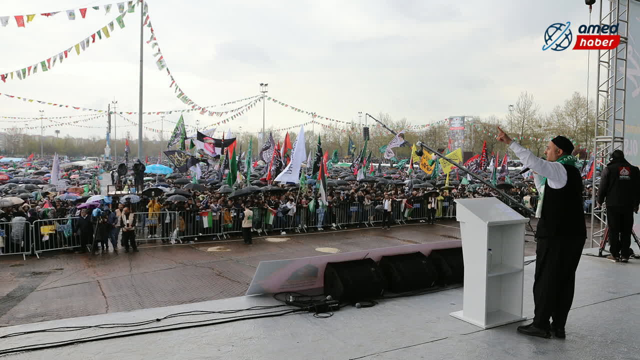 Yağışlı havaya rağmen katılımcılar program alanını terk etmedi; şemsiyeler ve yağmurluklarla Mevlid-i Nebi coşkusuna ortak oldu. Mevlid-i Nebi etkinliğine akın eden kalabalık, kadrajlara böyle yansıdı: