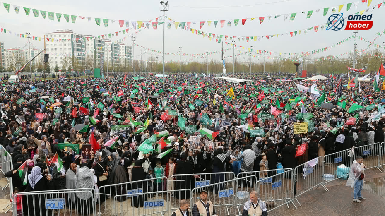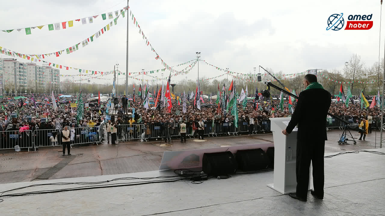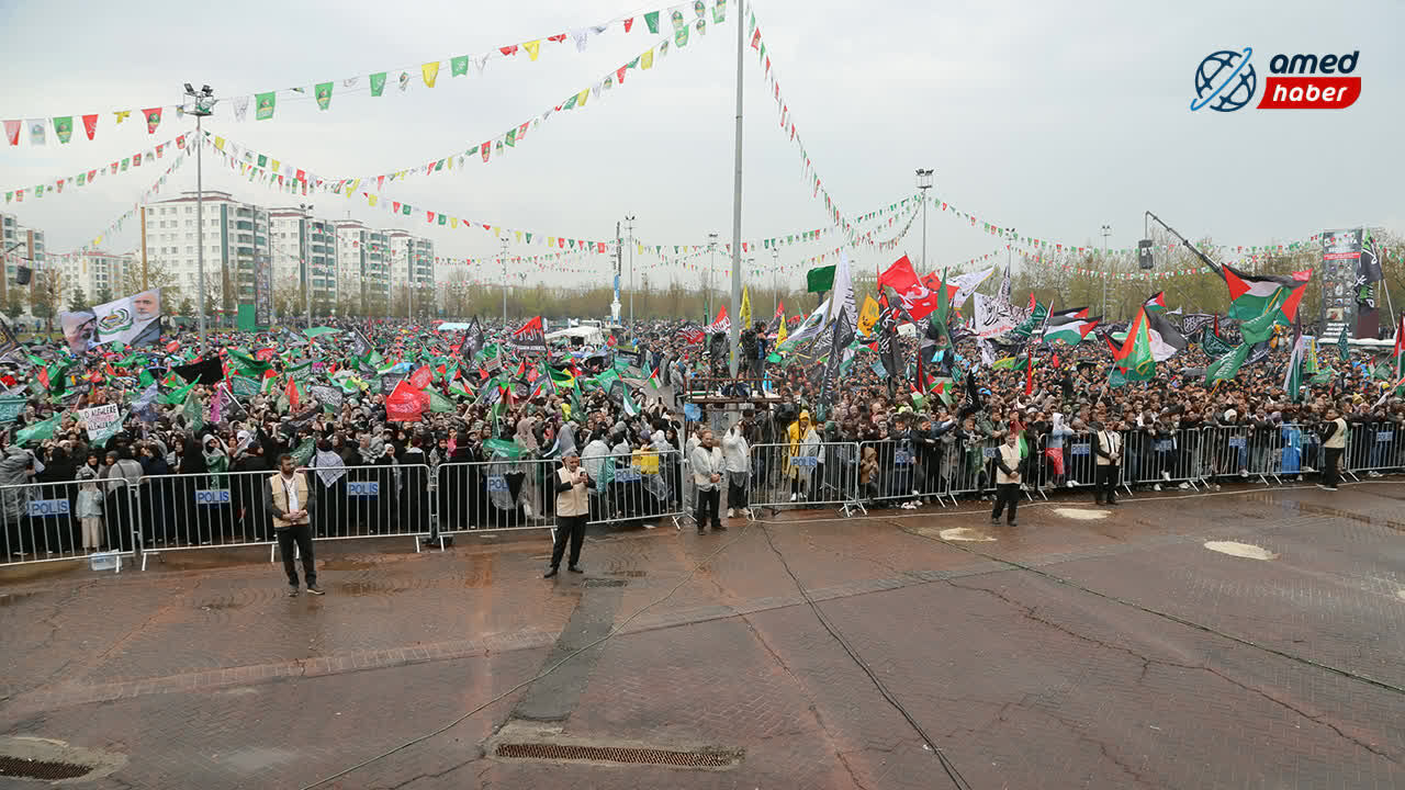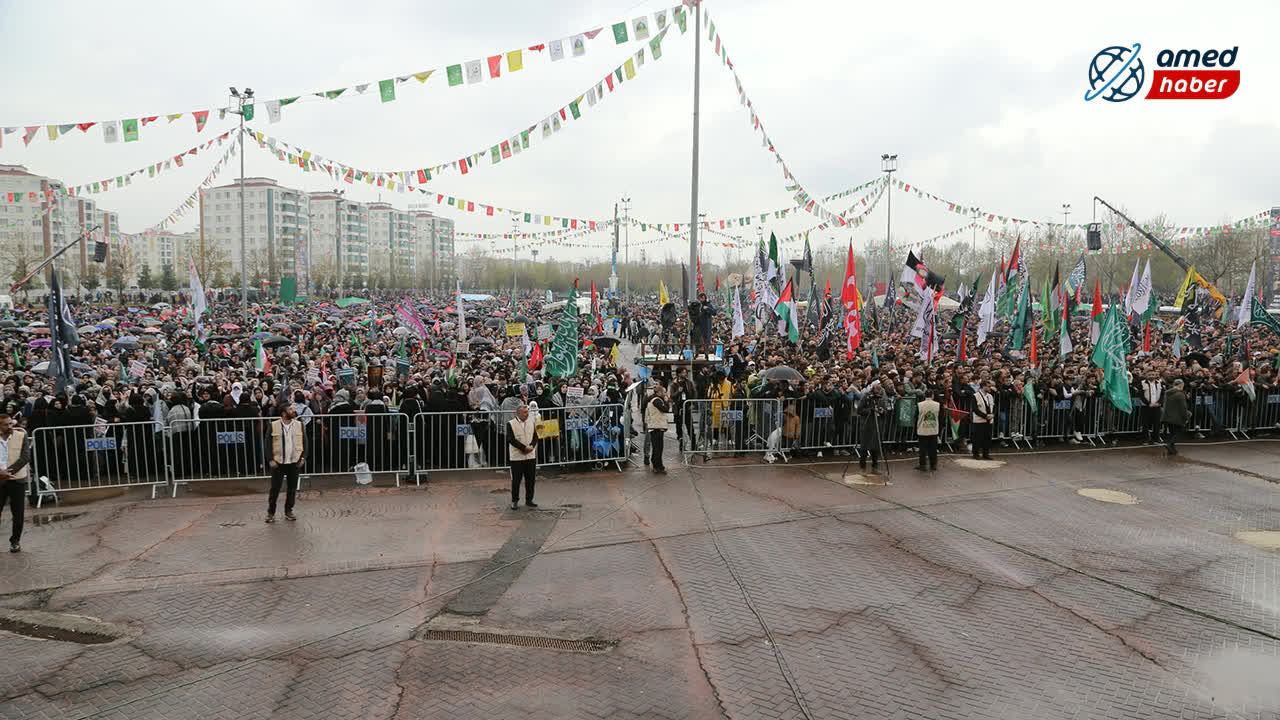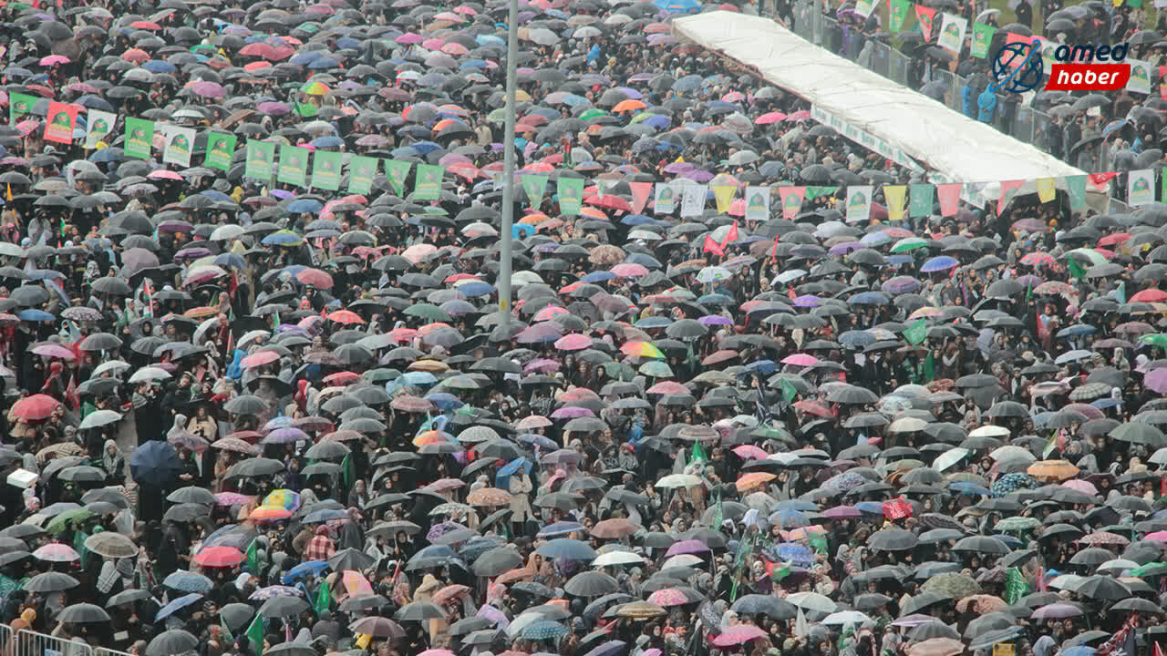Bağlar ilçesindeki Nevruz Parkı’nda düzenlenen programa, yağmura rağmen 7’den 70’e geniş bir katılımın olduğu gözlemlendi. Kadınlar, çocuklar, yaşlılar ve engelli peygamber aşıklarının akın ettiği etkinlikte alan tamamen doldu.