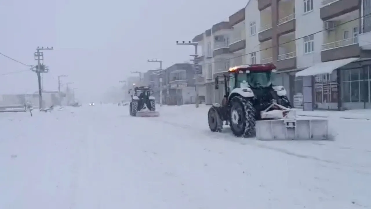 Dondurucu soğukta saatlerce süren çalışmalarda traktörlere takılan aparatlarla kar temizliği yapıldı.