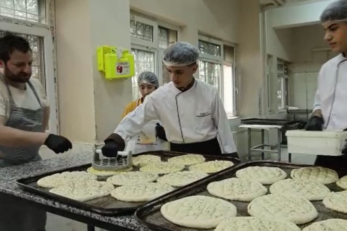 Diyarbakır Üçkuyu Turizm Mesleki ve Teknik Anadolu Lisesi'nin yiyecek ve içecek bölümü öğretmen ile öğrencileri, günlük 400 adet pide çıkartıp ihtiyaç sahibi ailelere ulaştırılmasını sağlıyor.