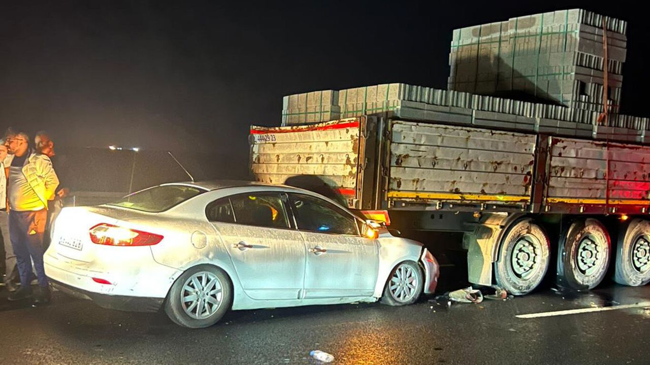 Sürücüsünün kimliği ve plakası henüz öğrenilemeyen otomobil, aynı istikamette ilerleyen briket yüklü tıra arkadan çarptı.