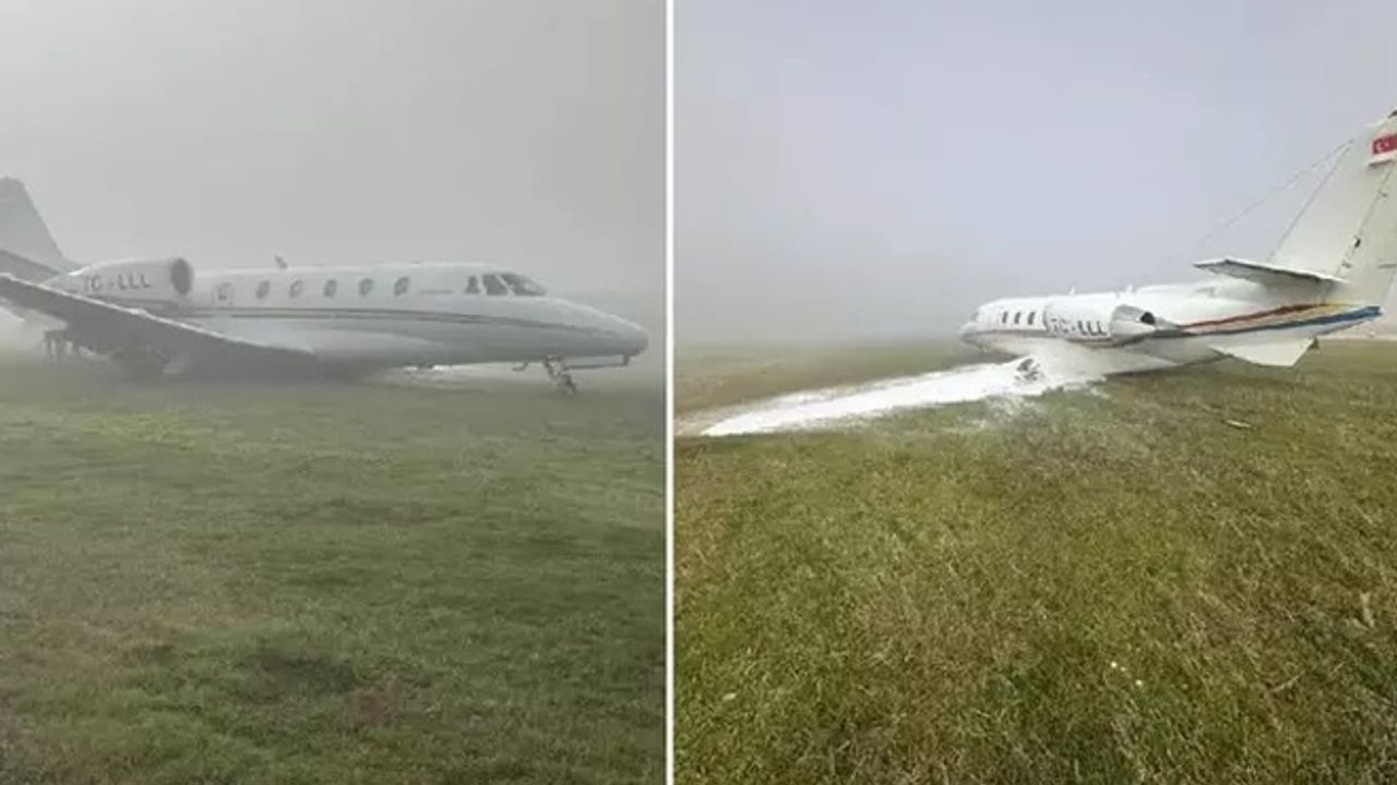 inişi sırasında yoğun sis nedeniyle pistten çıktı.