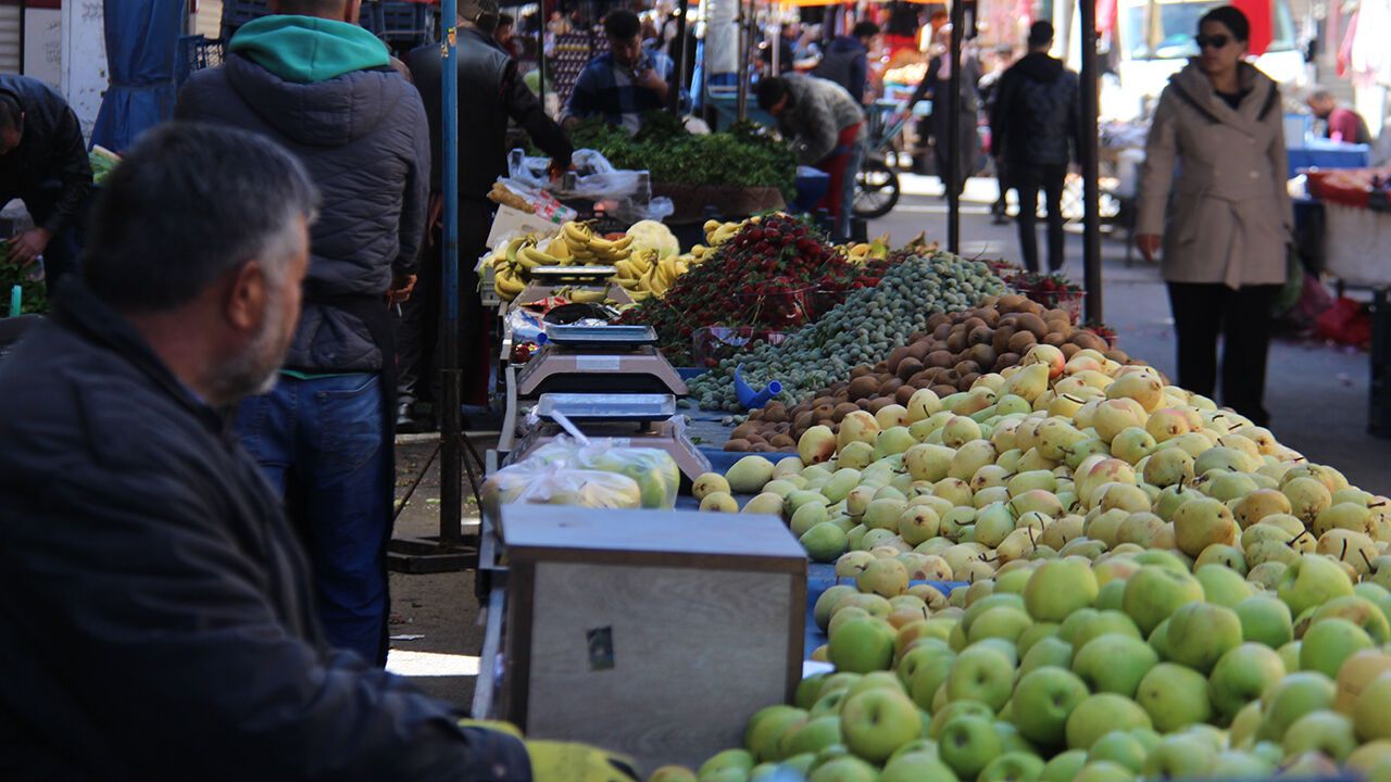 Pazara çıkanlar, sebze ve meyve fiyatlarının hâlâ yüksek olması nedeniyle bütçelerini zorlamak zorunda kaldıklarını belirtiyor.