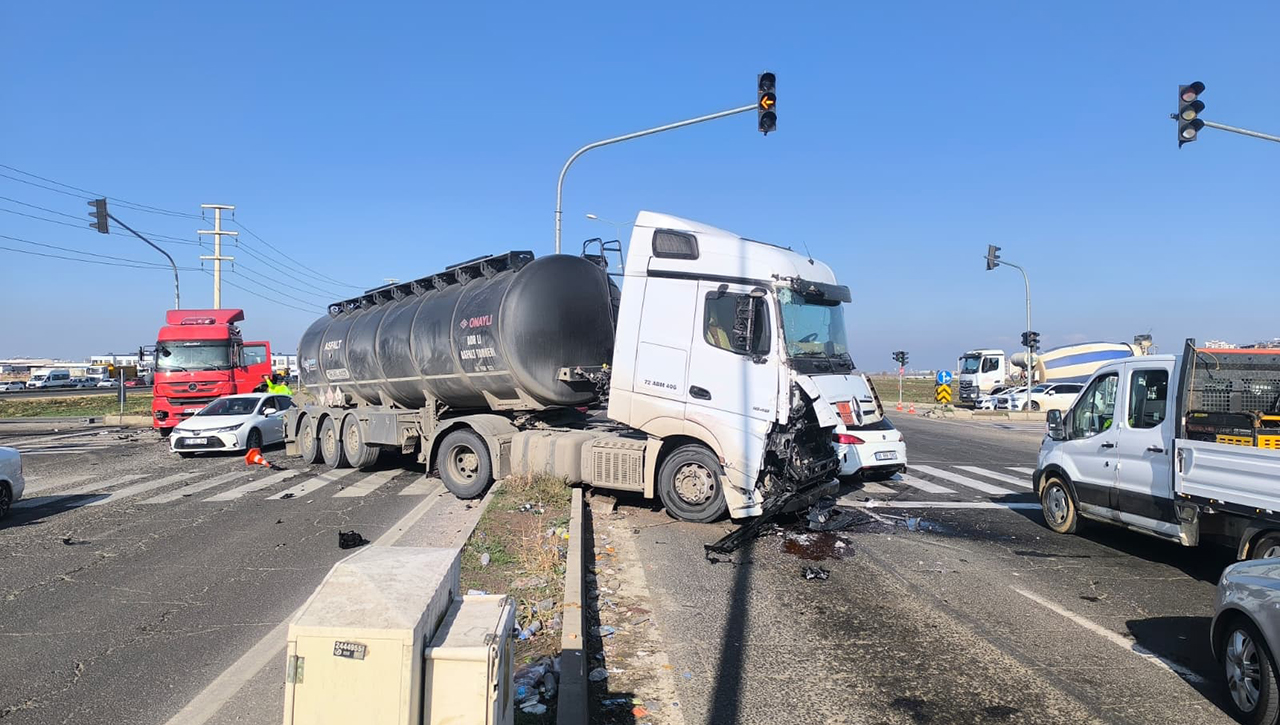 Edinilen bilgilere göre, tankerli bir tır ile dorsesiz iki tır ve bir kamyonun karıştığı kazada araçlarda maddi hasar oluştu. Kazanın ardından bölgeye trafik ekipleri sevk edildi.
