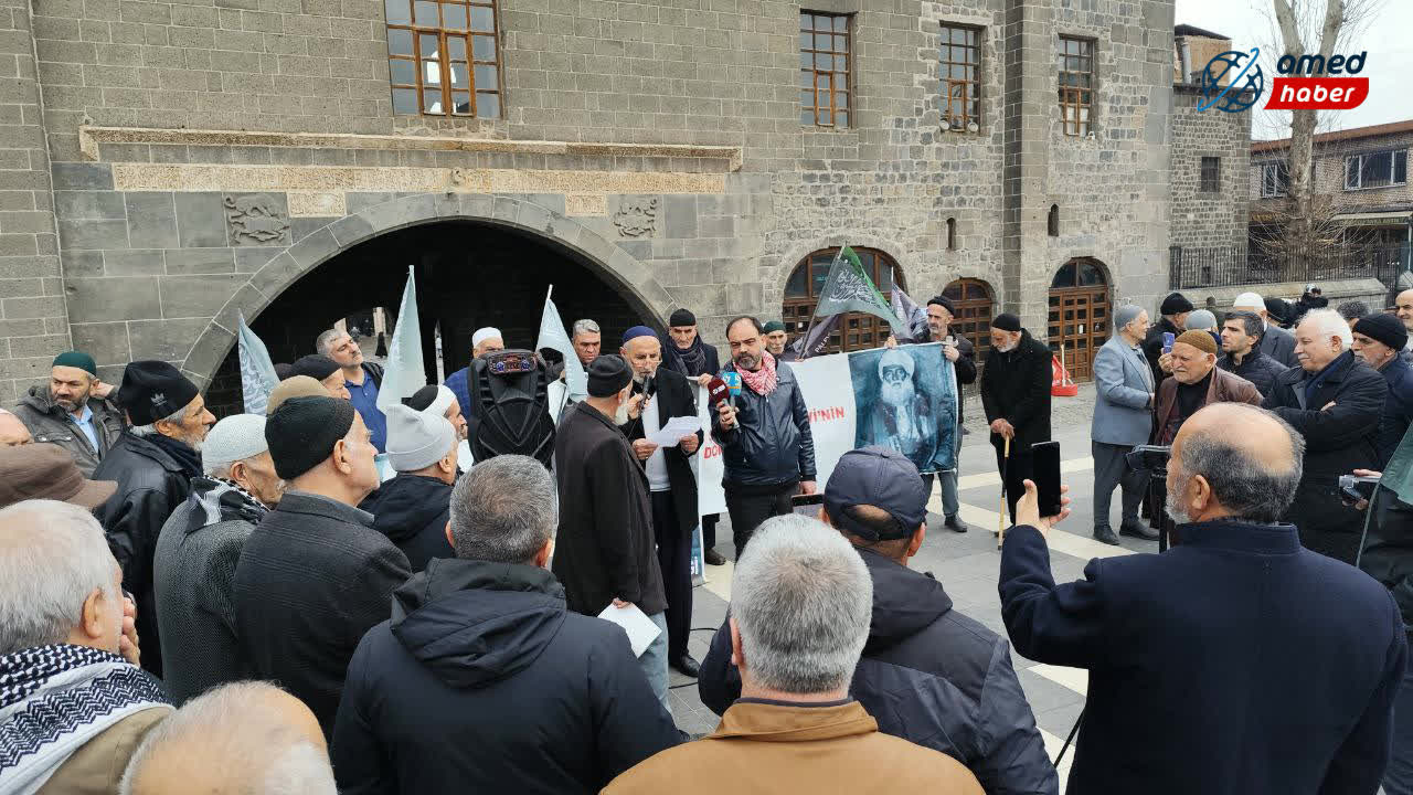Şehid Şeyh Said kıyamının 101'inci yıl dönümü münasebetiyle Diyarbakır Ulu Camii önünde basın açıklaması düzenleyen Palevi-Der, Şehid Şeyh Said Hazretleri'nin mezar yerlerinin açıklanması çağrısında bulundu.