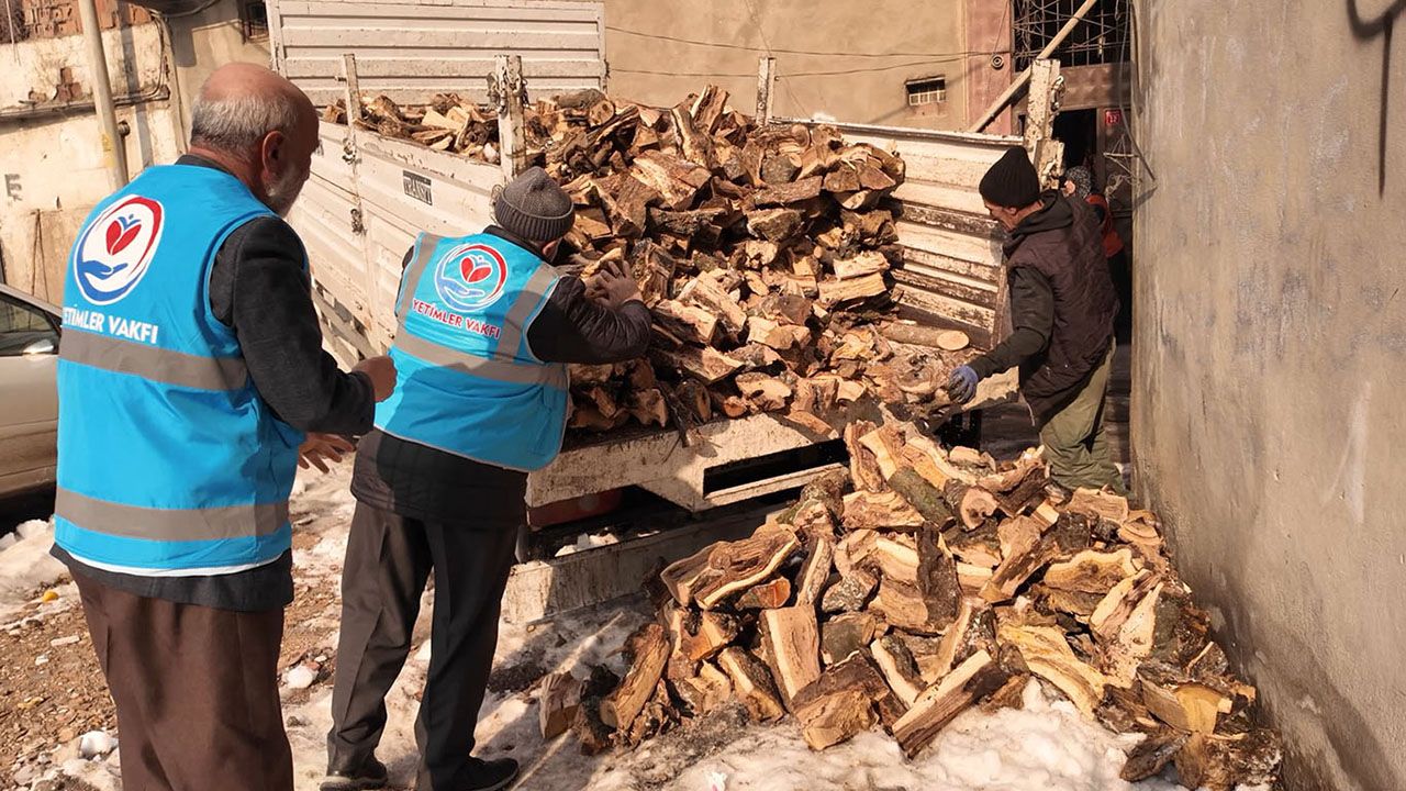 Diyarbakır'ın farklı mahallelerinde ihtiyaç sahibi ailelere yakacak desteklerini ulaştıran Yetimler Vakfı, belli tonajlarda yükledikleri yakacak odunları ailelere teslim etti.