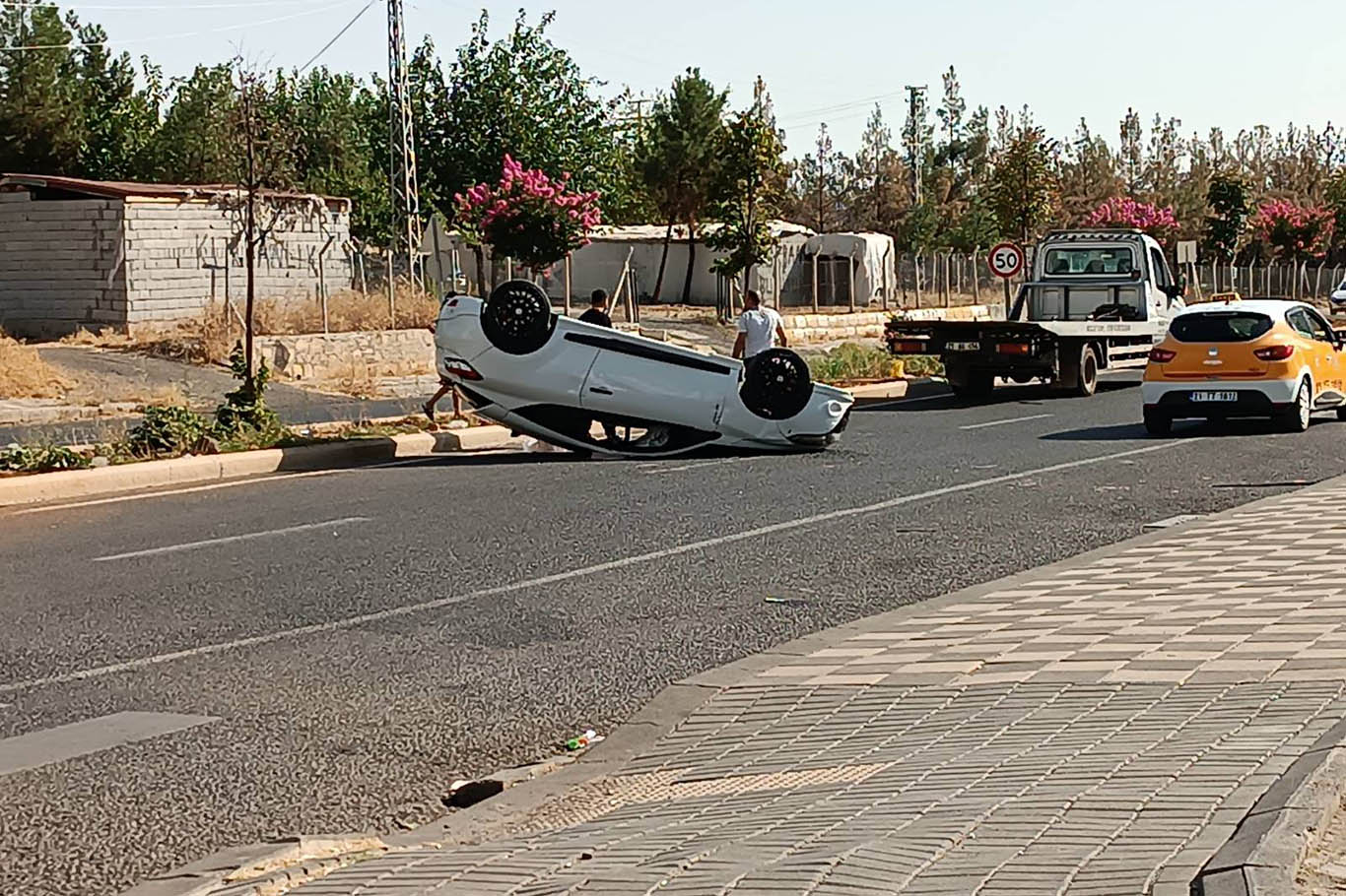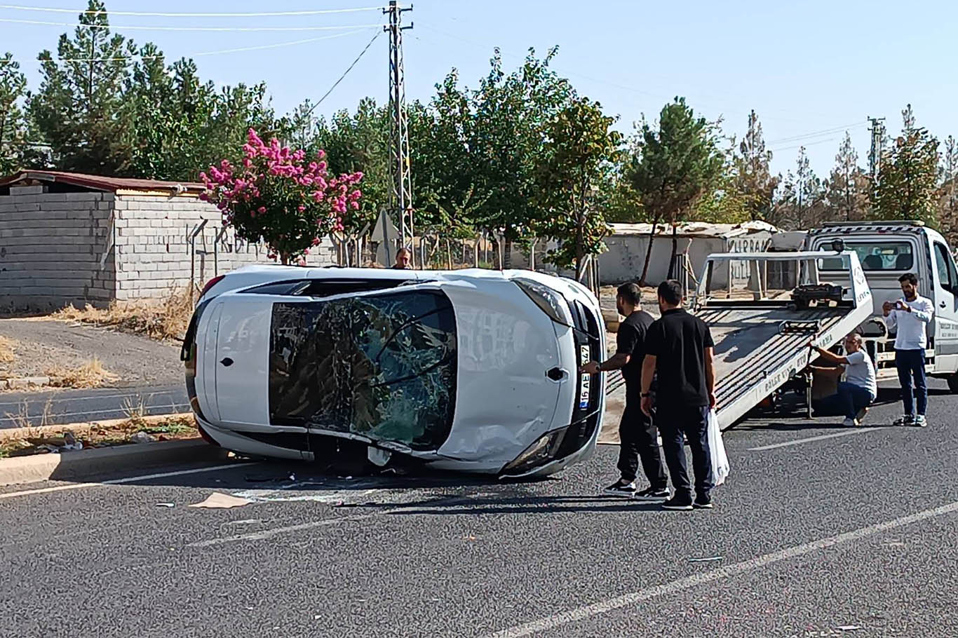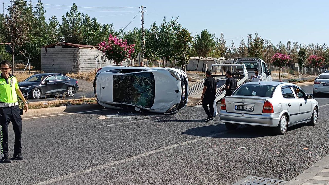 Çarpışmanın etkisiyle 16 AEP 547 plakalı otomobil ters yatarken sürücüsü yaralandı. Diğer araçta ise hasar oluştu.