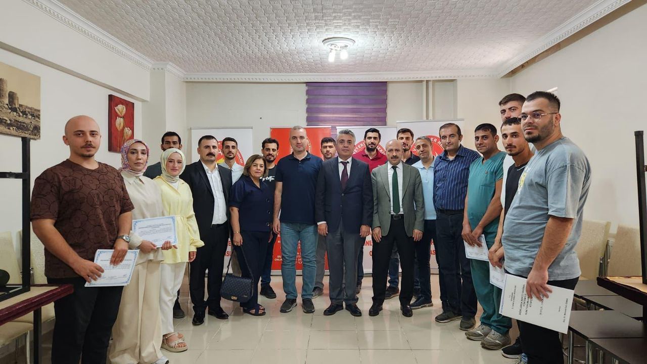 Kursu başarıyla bitiren 14 kursiyere sertifikaları, Diyarbakır Veteriner Hekimler Odası’nda düzenlenen törenle takdim edildi. Törene, İl Müdür Yardımcıları Mehmet Halit Gülçer ve Muhammed Kasım Aydın, Hayvan Sağlığı Şube Müdürü Mustafa Lütfü Mendi, Dicle Üniversitesi Veteriner Fakültesi Dekanı Prof. Dr. Sadık Yayla, Dölerme ve Suni Tohumlama Anabilim Dalı Başkanı Doç. Dr. Mehmet Ferit Özmen, Diyarbakır Bölgesi Veteriner Hekimler Odası Başkanı Muhammed Ali Süleymanoğlu ile çok sayıda veteriner hekim katıldı.