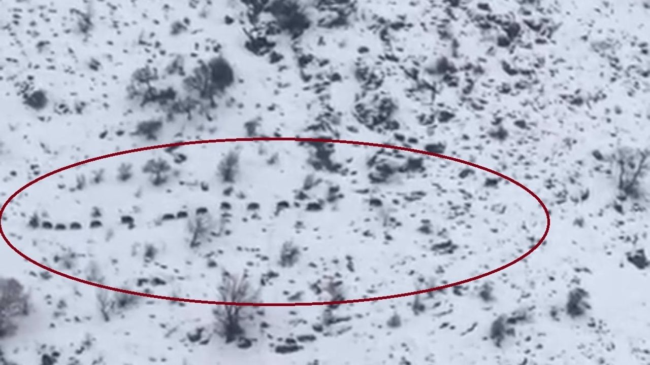 İlçenin Elmadere Mahallesi mevkiinde sürü halinde gezen domuzlar görüldü. Bölgede yol açma çalışmalarında bulunan iş makinası operatörü Cuma Çelik, sürü halinde olan domuzları cep telefonuyla görüntüledi.