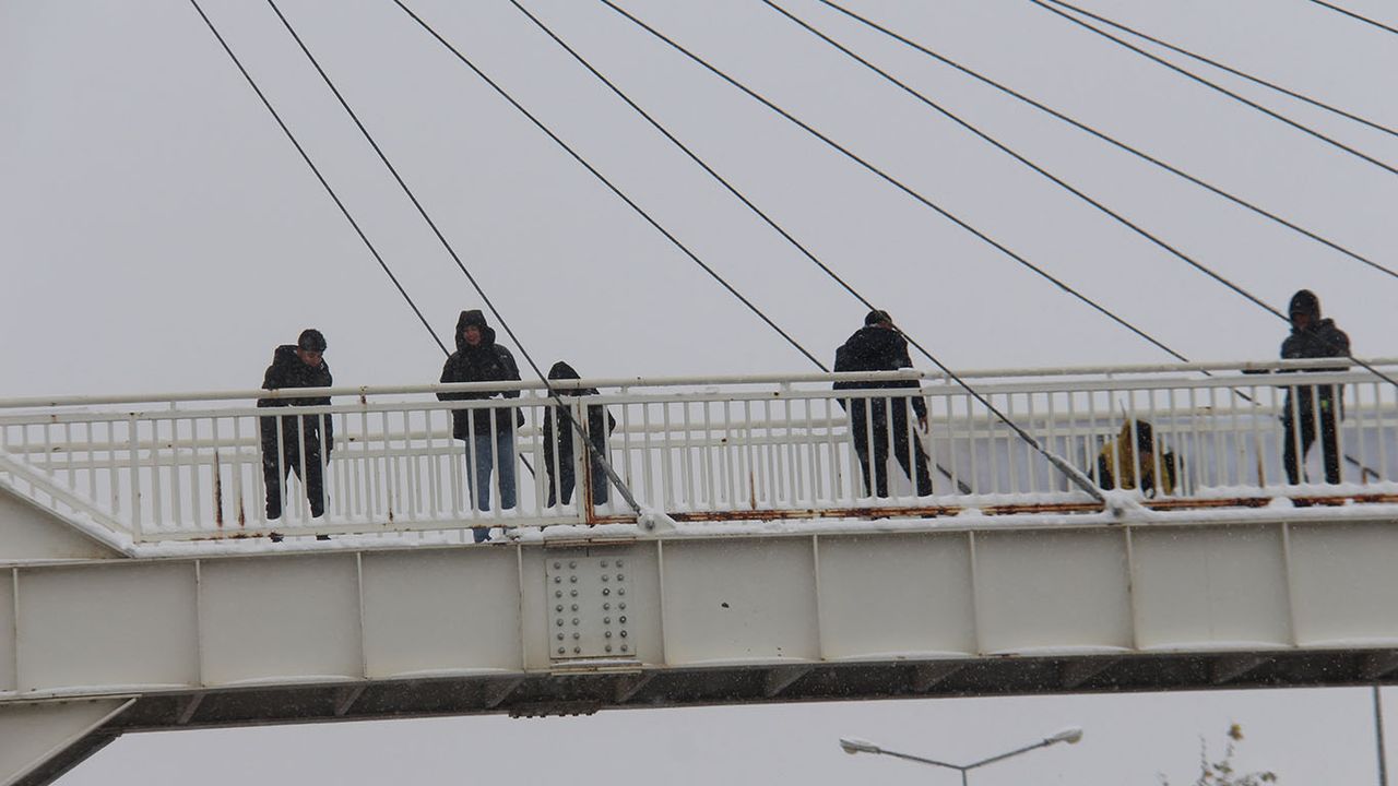 Üst geçitten atılan kar topları nedeniyle sürücülerin görüş açısı aniden kapanırken, araçlarda ani fren ve manevralar dikkat çekti.