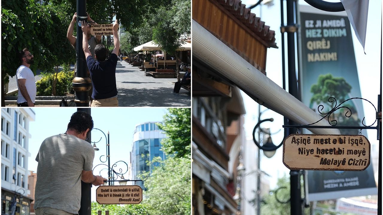 Kamuoyundan gelen olumlu baskıların ardından klasik Kürt edebiyatının önemli isimleri Ehmedê Xanî, Melayê Cizîrî, Feqiyê Teyran, Haci Qadirê Koyî, Ali Herîrî ve Siyapoş’un eserlerinden seçilen beyitler, hazırlanan ahşap panolara yazılarak Gazi Caddesi’ndeki aydınlatma direklerine asıldı.