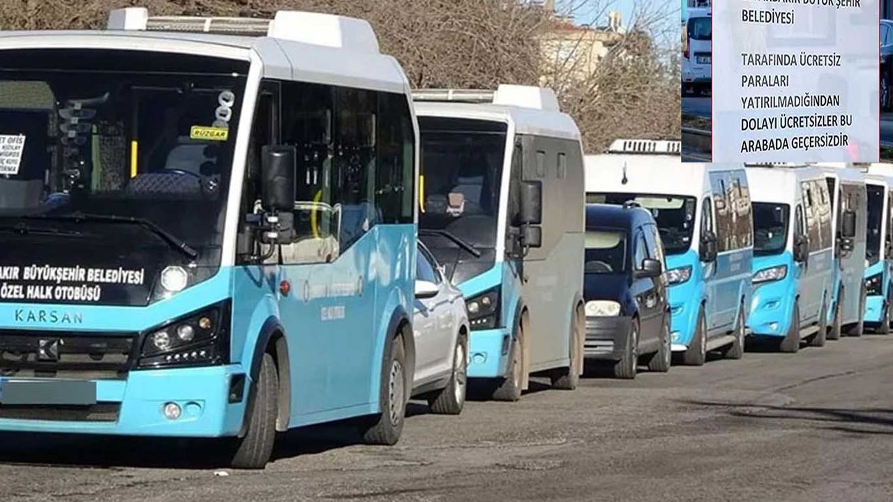 Bazı otobüs camlarına, “Diyarbakır Büyükşehir Belediyesi tarafından ücretsiz paraları yatırılmadığından dolayı ücretsizler bu arabada geçersizdir” şeklinde yazılar asıldı.