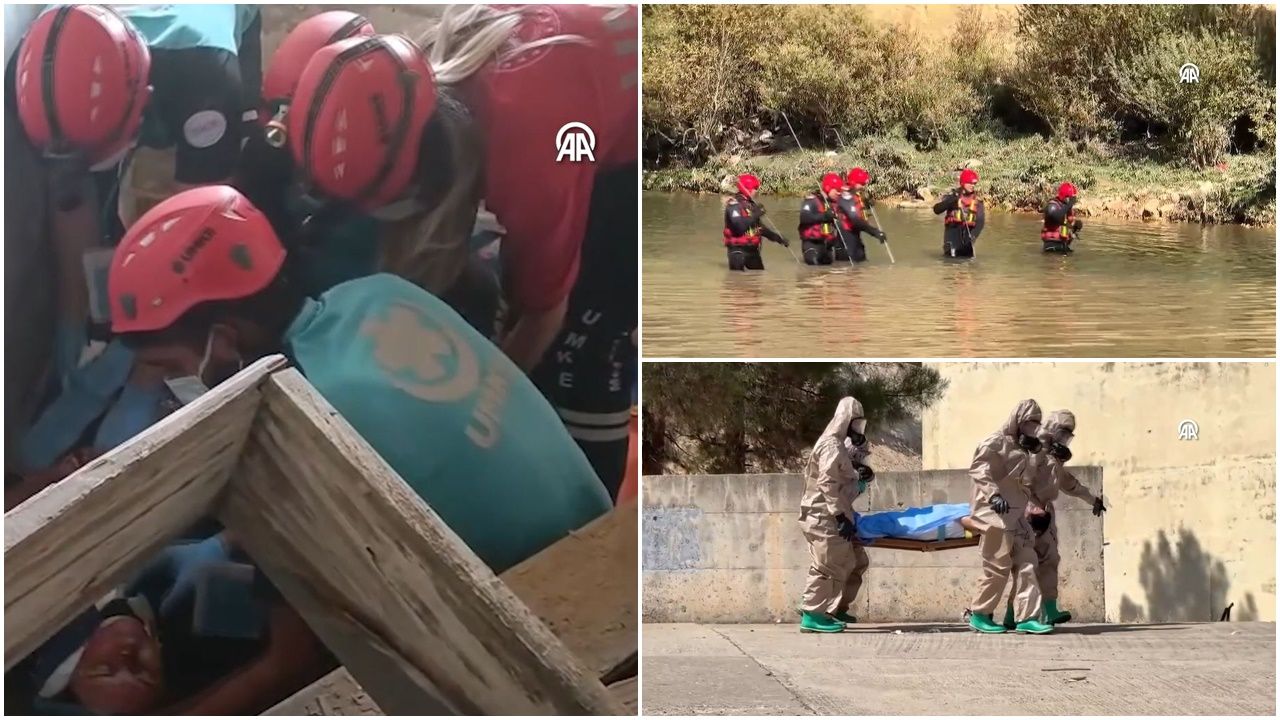 Tatbikatta, iki enkaz alanı, Kimyasal, Biyolojik, Radyolojik ve Nükleer (KBRN) olayları, doğada arama kurtarma, suda boğulma, yangın, seyyar hastane kurulumu ve haberleşme senaryoları eş zamanlı uygulandı.