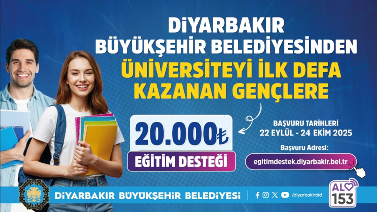 Büyükşehir Belediyesi, üniversiteye ilk kez kayıt yaptıran Diyarbakırlı öğrencilere toplam 20 bin TL eğitim desteği sağlayacak. Söz konusu destekten 19 Temmuz'dan önce Diyarbakır'da ikamet eden öğrenciler yararlanabilecek.