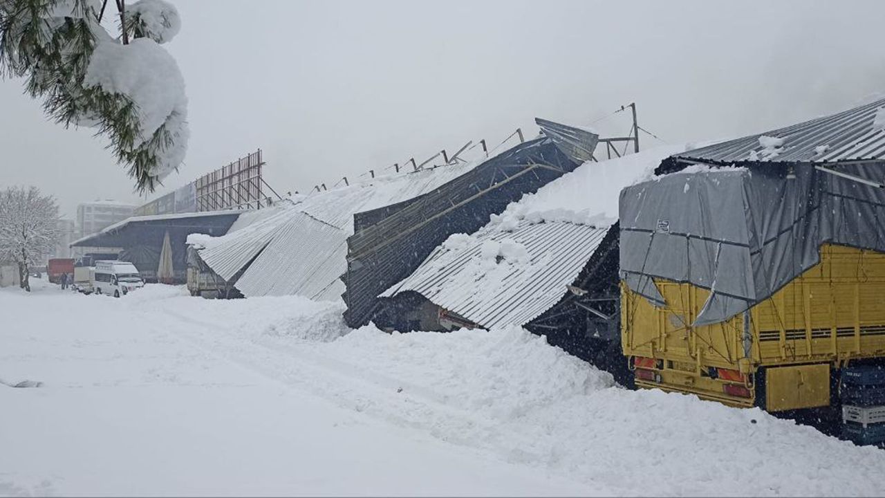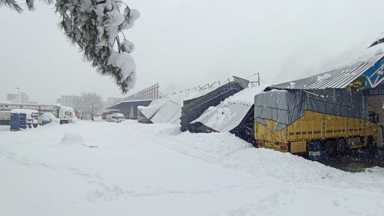 Karın ağırlığına dayanamayarak çöken çatılar, park halindeki araçlarda maddi hasara yol açtı ve çevrede büyük paniğe neden oldu.
