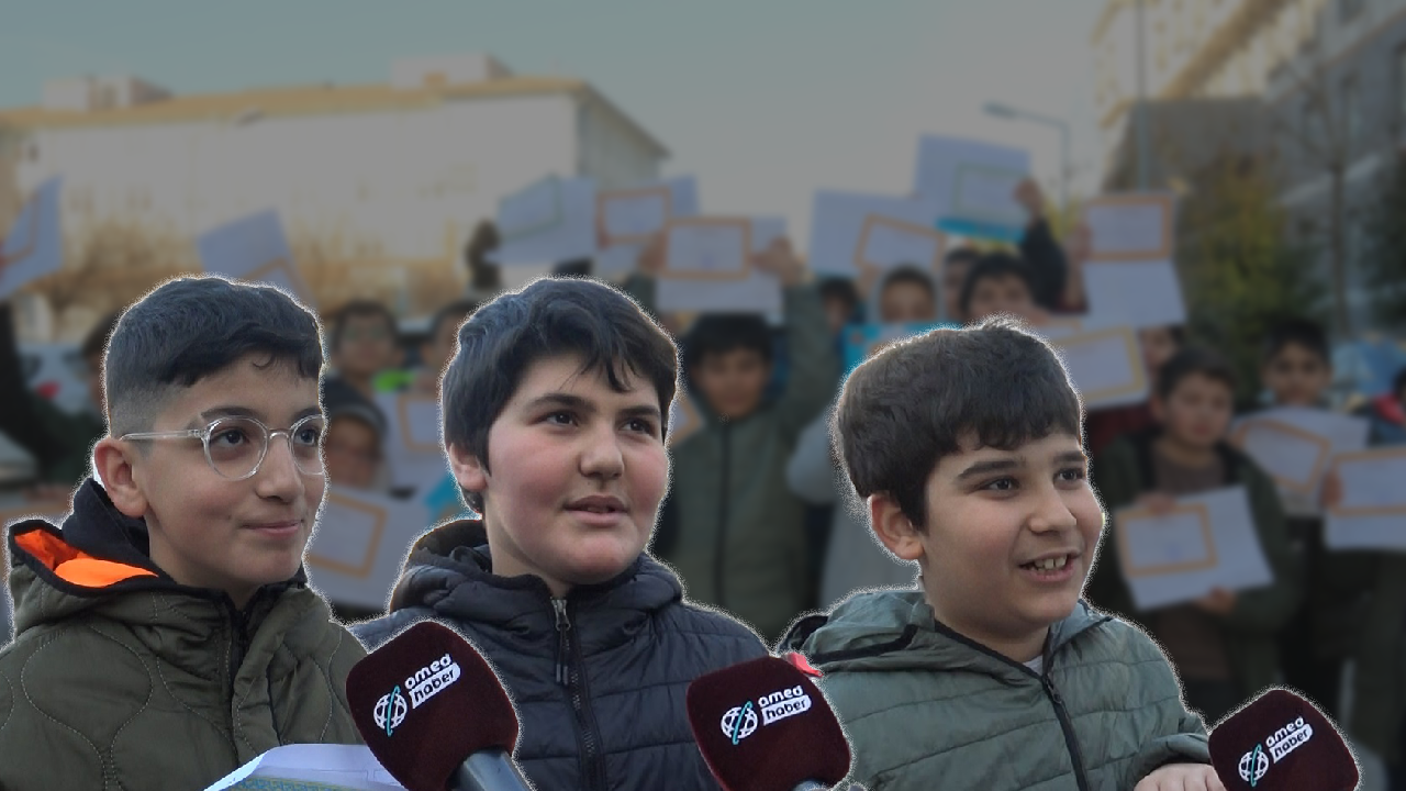 Öğrencilerden biri ise Gazze'deki akranlarını unutmayıp onlarında bir an önce özgürce eğitim görüp karne sevinci yaşayabilmelerini temenni etti.