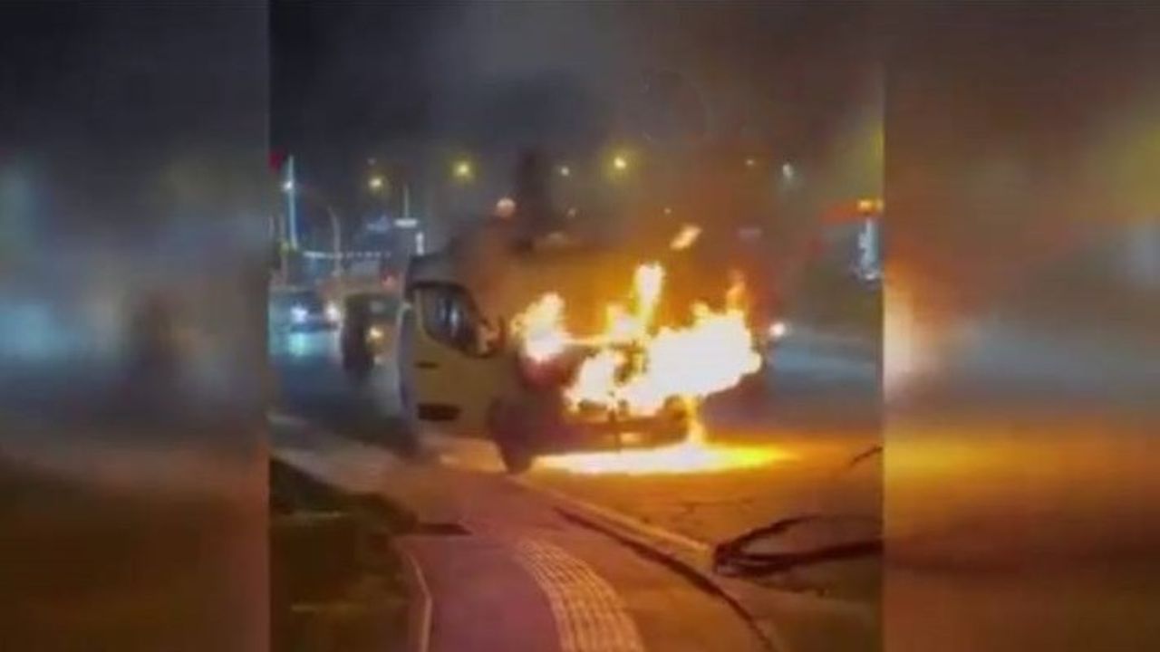 İçindeki yolcular hızla tahliye edilirken, kısa sürede büyüyen yangın minibüsü kullanılamaz hale getirdi.